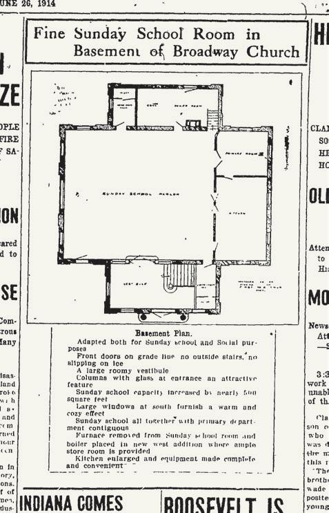 longer suit the needs of the community. Instead of razing the church, it was substantially renovated and added onto between 1914 and 1915. One of the most notable changes during the process involved moving the front entrance, then facing Fifth Street, to Broadway.