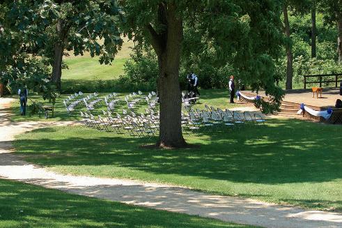 Features: Outdoors, tent overlooks the fourth tee, covered walkway to the clubhouse, portable dance floor and bar.