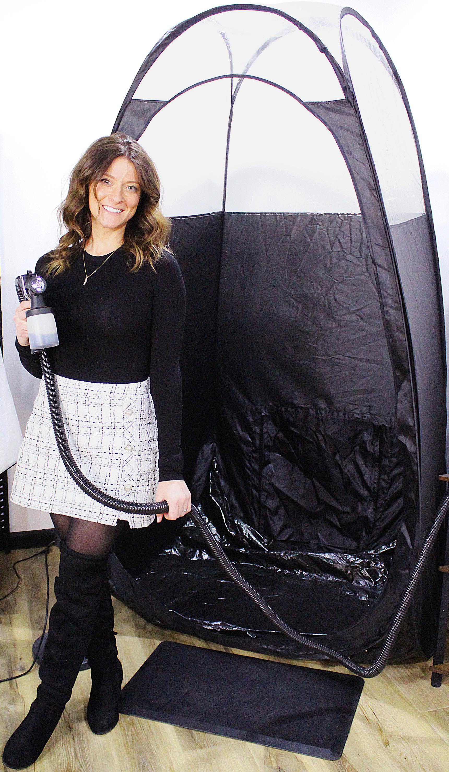 Today, she focuses exclusively on spray tans, though she hasn’t ruled out offering tanning beds in the future to give clients another option. For now, she emphasizes the control and precision of hand-applied spray tans over booths, which may produce uneven or unpredictable results.