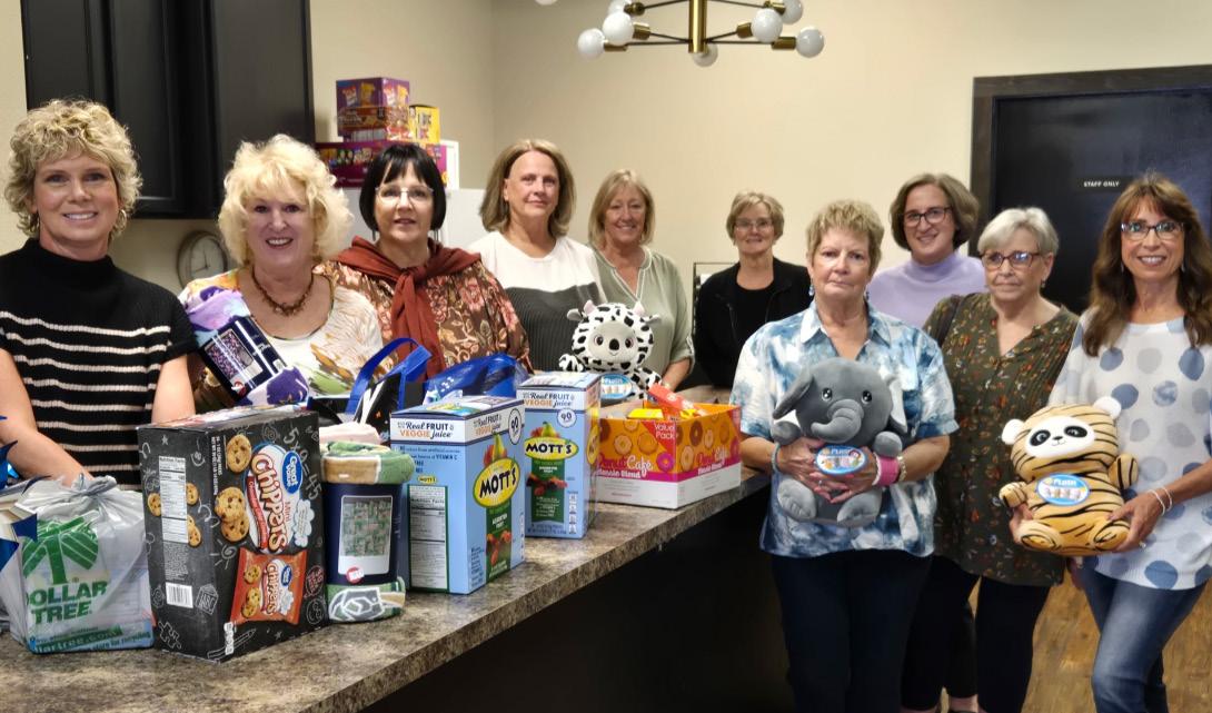 The Tau Pi Chapter of Beta sigma Phi offers its support to the april House Children’s advocacy Center by donating snacks for the children who come to the center as part of a child abuse investigation. Pictured are Carrie Melton (from left) from april House Children’s advocacy Center; Beta sigma members Cindy schott, Cindy Fane, Jan Moser, eileen sedig and debbie donnelly; Lisa Zacharski of april House; and (front row) Lori Johnson, Pat Mcleod and Kim Ptak.