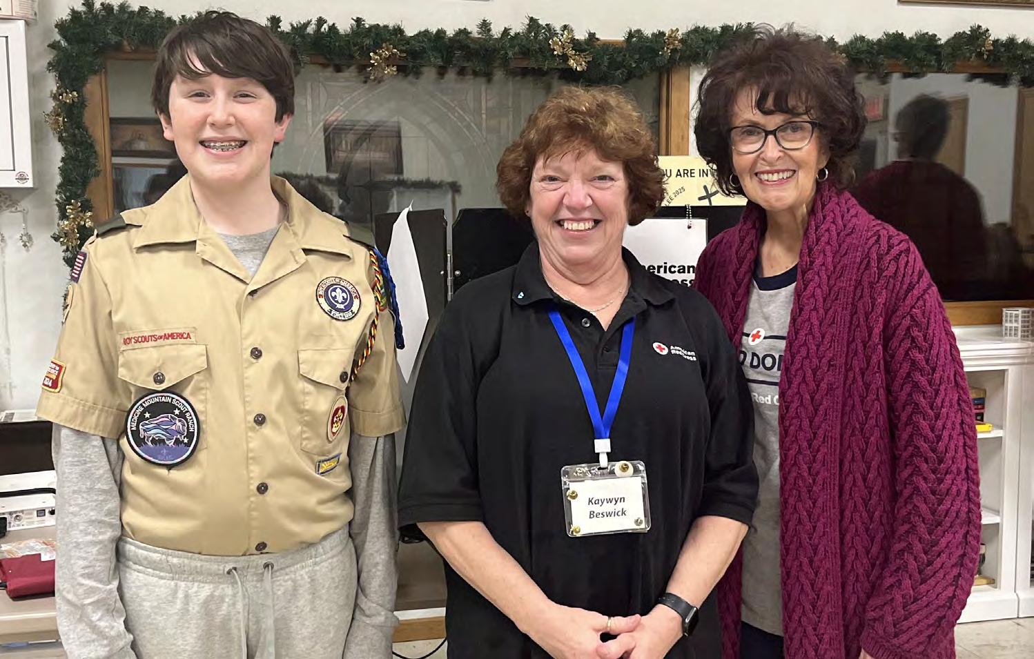 Another fantastic occurrence at the blood drive happened when grandmother Stephanie Vavra reached her 10-gallon milestone, and her grandson, Isaac Blevins, earned his medical badge for Scouts by escorting at the blood drive.