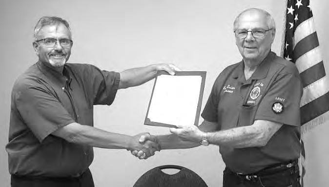 Morrison American Legion Post 328 Commander Larry Zuidema (right) recently was presented with the National Commander Vincent J. Troiola Certificate of Appreciation award. Jerry Brearton, sergeant-at-arms, presented the award on behalf of Troiola. Zuidema’s post successfully accomplished 100 percent of its annual membership goal for 2023. “This is for all of us, not just me” Zuidema said.