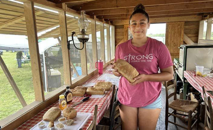 That flour was taken to the “Cook Shack” where Sabrina Smith, 14, of Clinton, Iowa, served up samples of freshly baked wheat bread for visitors to try.