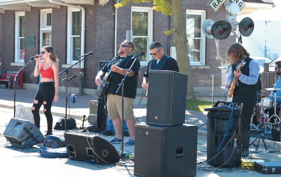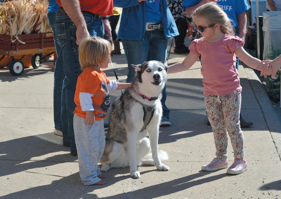 TOP PHOTO: KoaJahn,2, of Camanche,and Cora Chase, 4, of Clinton, pet Nala therescue dog during Fulton’s Fall Fest Nala waswith her owner Mike Lewis, Whiteside County Sheriff candidate ABOVE: Ron Pell of Morrison cruised inhis 1970 BuickSkylark for the car show, sponsored by the Clinton Area RodClub. BELOW: Live music by the brew block tent filled the air on Saturday with performances by Dan Peart, Molly Shannon and The Stockwells (pictured). PhotosbySarahFordforShawMedia TOP PHOTO: Adelyn Tuttle, 10, of Sabula, petsaShetlandsheep at the P&C Little Rascals petting zoo set upbetween Andresen Nature Center and Heritage Canyonon Saturday Besides the downtown events, boththe canyonand nature center had family fun activities on Saturday and Sunday ABOVE: Beckett Meier, 3, ofClinton, had funridinga mini-train on the streets of Fultonon Saturday. Kids were lined up for the $1train rides and other kids’ zoneactivitiessuch as pumpkin-painting, face-painting and bounce houses. Whiteside County Sheriff John Booker and Fulton PoliceChief Nick Neblung smile for the camera at the Fulton Fall Fest photo station on Saturday, Oct. 1. Neblung thanked the Fulton FunCrew for doing a“phenomenal jobin bringing the event to life,” while adding that the turnout was amazing.He also thanked thecommunity forshowing up andsupporting the event, with hundreds of people enjoying theday’s festivities.