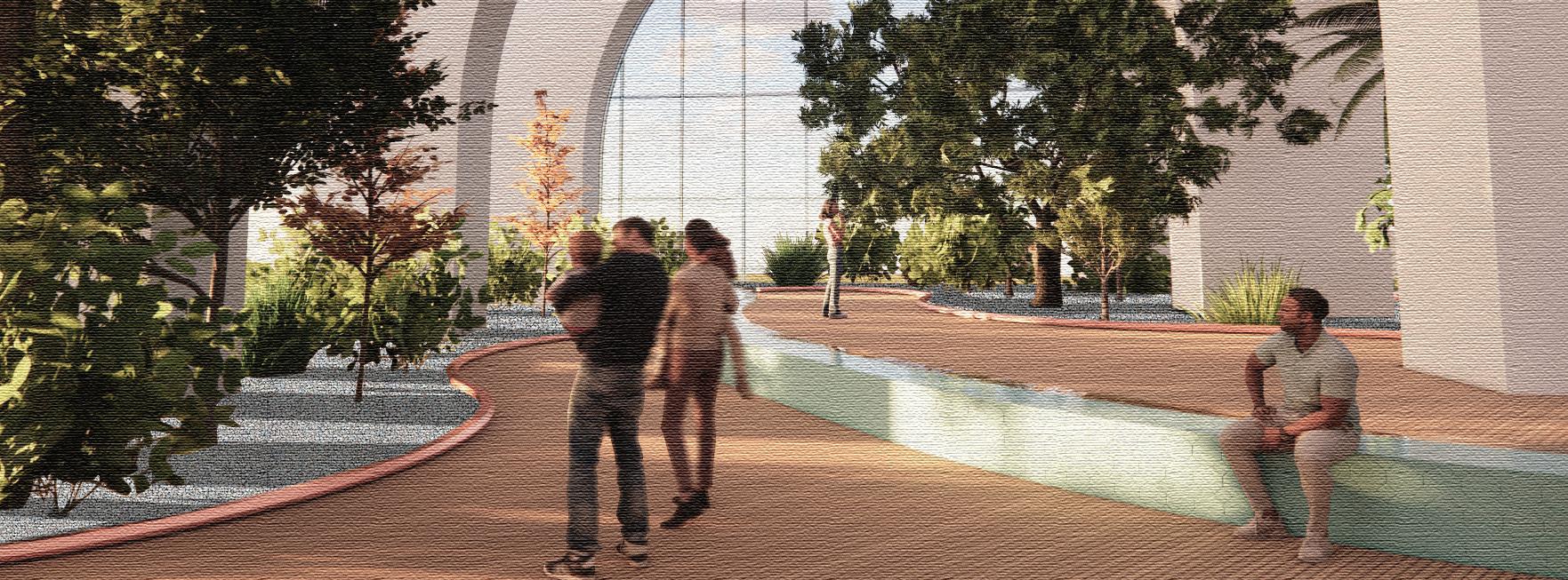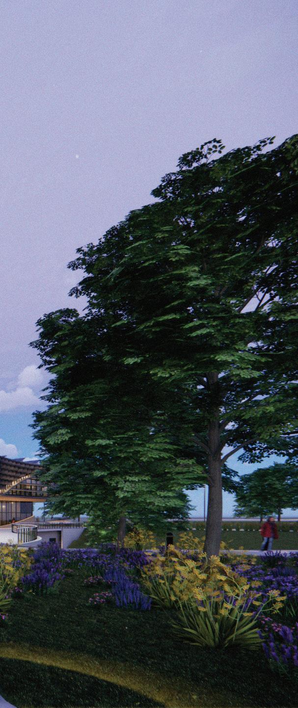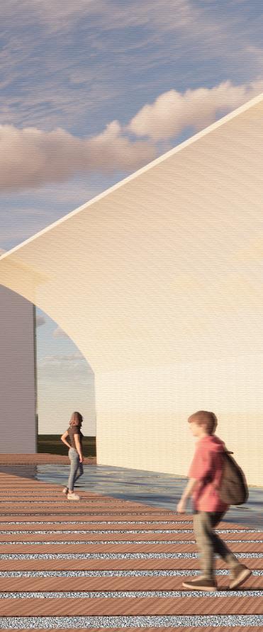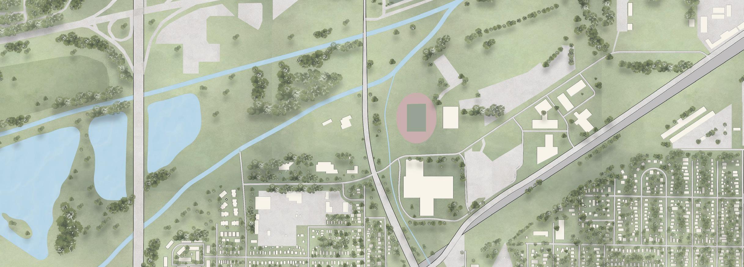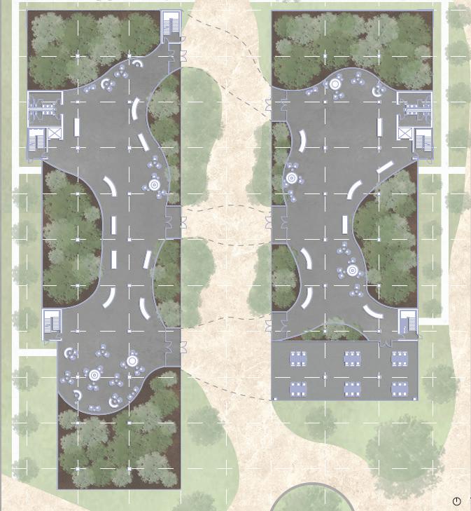 This master site plan illustrates how an economy can thrive when it is thoughtfully activated. By creating purposeful destinations, the design draws people into previously underutilized spaces and fosters a welcoming sense of community. The plan invites individuals of all backgrounds and industries to come together to engage with nature, through recreational use of the paths or through the study of hydrology, encouraging both social connection and environmental awareness.