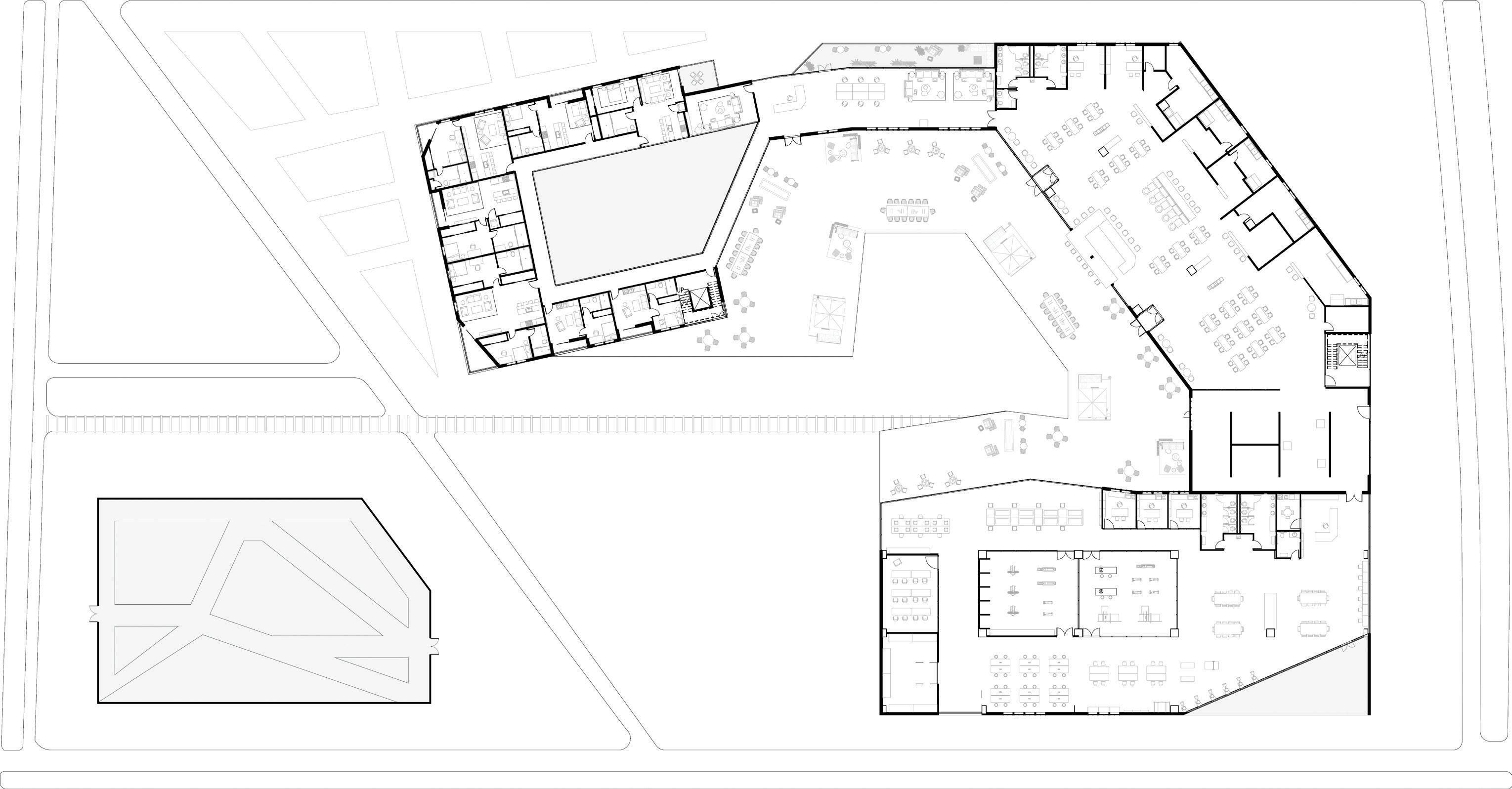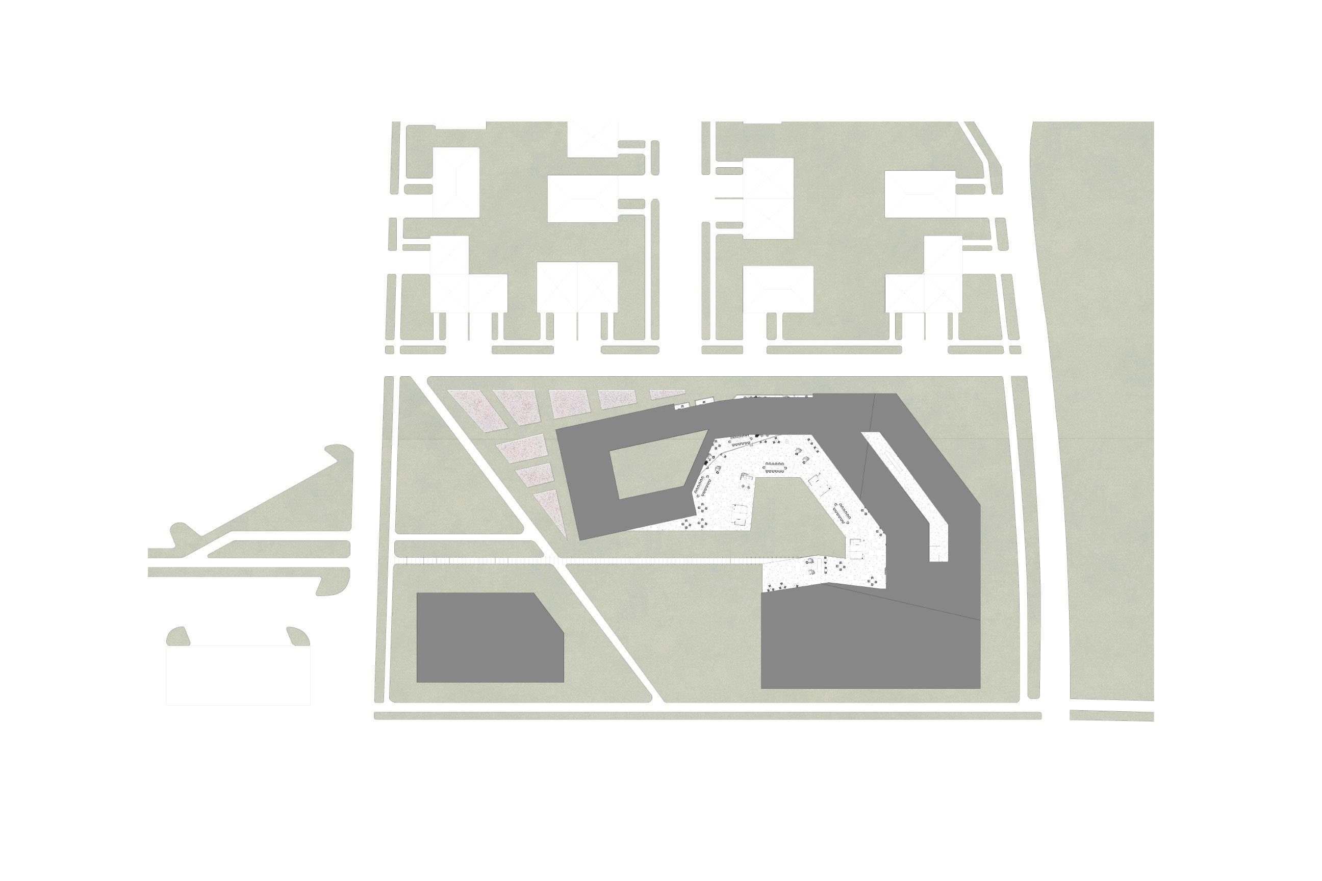 Radicata Una Serra Naturale is a site that incorporates multiple buildings, offering an opportunity for a more unified design. Below is an overall blocking plan that illustrates how the spaces can function together, accompanied by a perspective rendering of the envisioned layout. Ultimately, this space provides the community with a place to gather and connect with the natural environment.