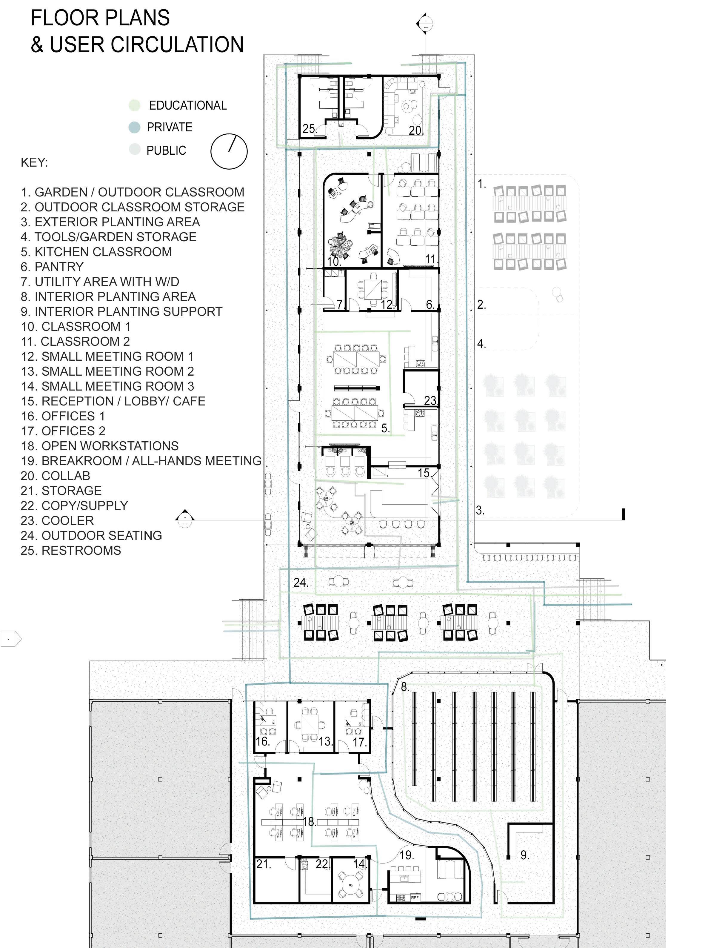 The Collective aims to foster experiences within the urban interior that increase awareness, knowledge, and create meaningful connections to nature for underrepresented youth and young adults, with a focus on food security and healthy eating. This biophilic design offers a space where students can grow food, develop recipes, and share their cultural heritage with the Houston community. Students also have the opportunity to sell their creations to both the professional community connected to the space and the public through an indoor-outdoor café.
