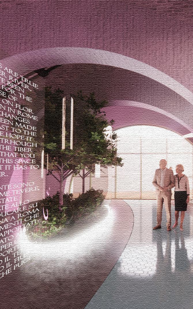 The Radicata Una Serra Naturale has the main intention of revitalizing to create a community space where people have the opportunity to gather every day rather than once a week. This project will add color, light, and life to the area creating a welcoming and vibrant space. It will also continue to introduce the topic of an aquaponics system to Rome but in a more public and commercial way. This includes a food waste partnership with a local shelter to give back to the community that has made this possible. In order to celebrate the future it is important to recognize the past so the gallery space will represent the flora and fauna around the river to bring back its history. Functionally this area will bring both a night and day life with many play aspects through water for families celebrated with color, light, and culture.
