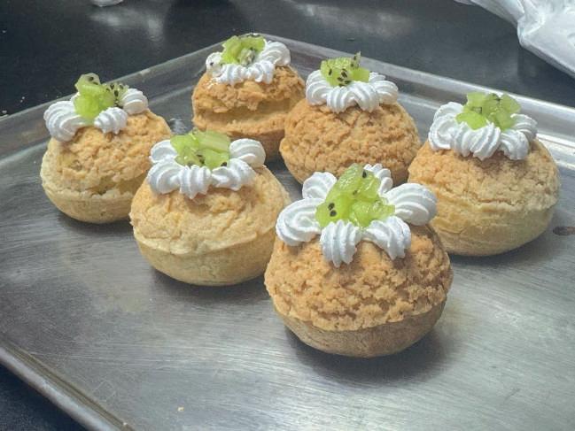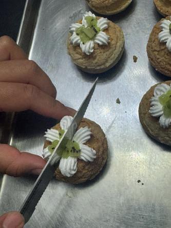 El kiwi ha sido de uso extraordinario en la pastelería gracias a su sabor fresco y acido capaz de contrastar sabores dulces, además de su textura jugosa y su capacidad de acoplarse en diversas preparaciones como cremas, mousses, helados, etc. También su uso como decoración en cheesecakes, pavlovas y tartas.