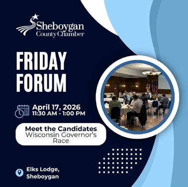 We are excited to welcome candidates in the State of Wisconsin Governorās race to our upcoming Friday Forum on April 17th. This special lunchtime event offers a unique opportunity to hear directly from those seeking to lead our state. Several candidates have already confirmed their participation, and we will continue to update the registration page at sheboygan.org as additional commitments are secured. We encourage you to reserve your seat and take advantage of this chance to become a more informed and engaged member of our community.