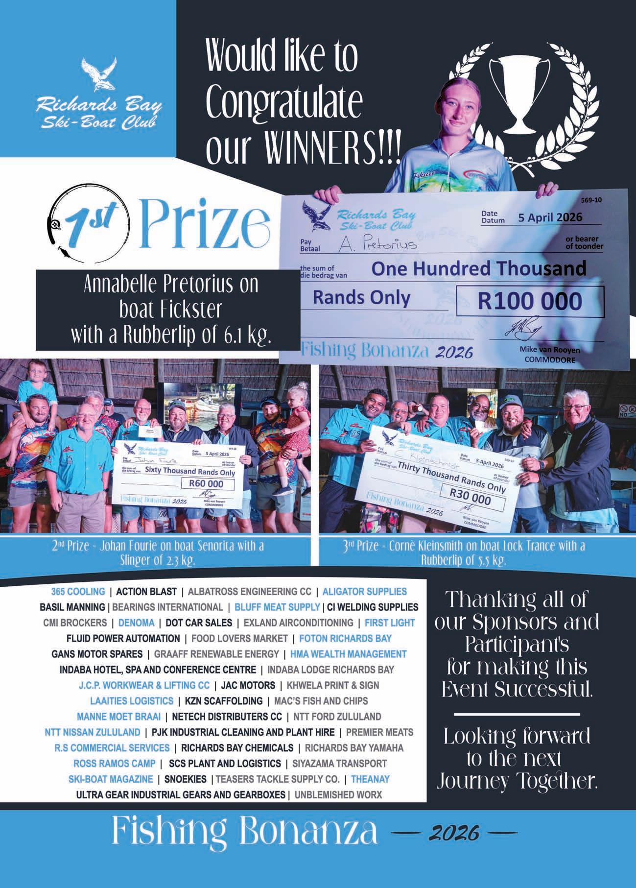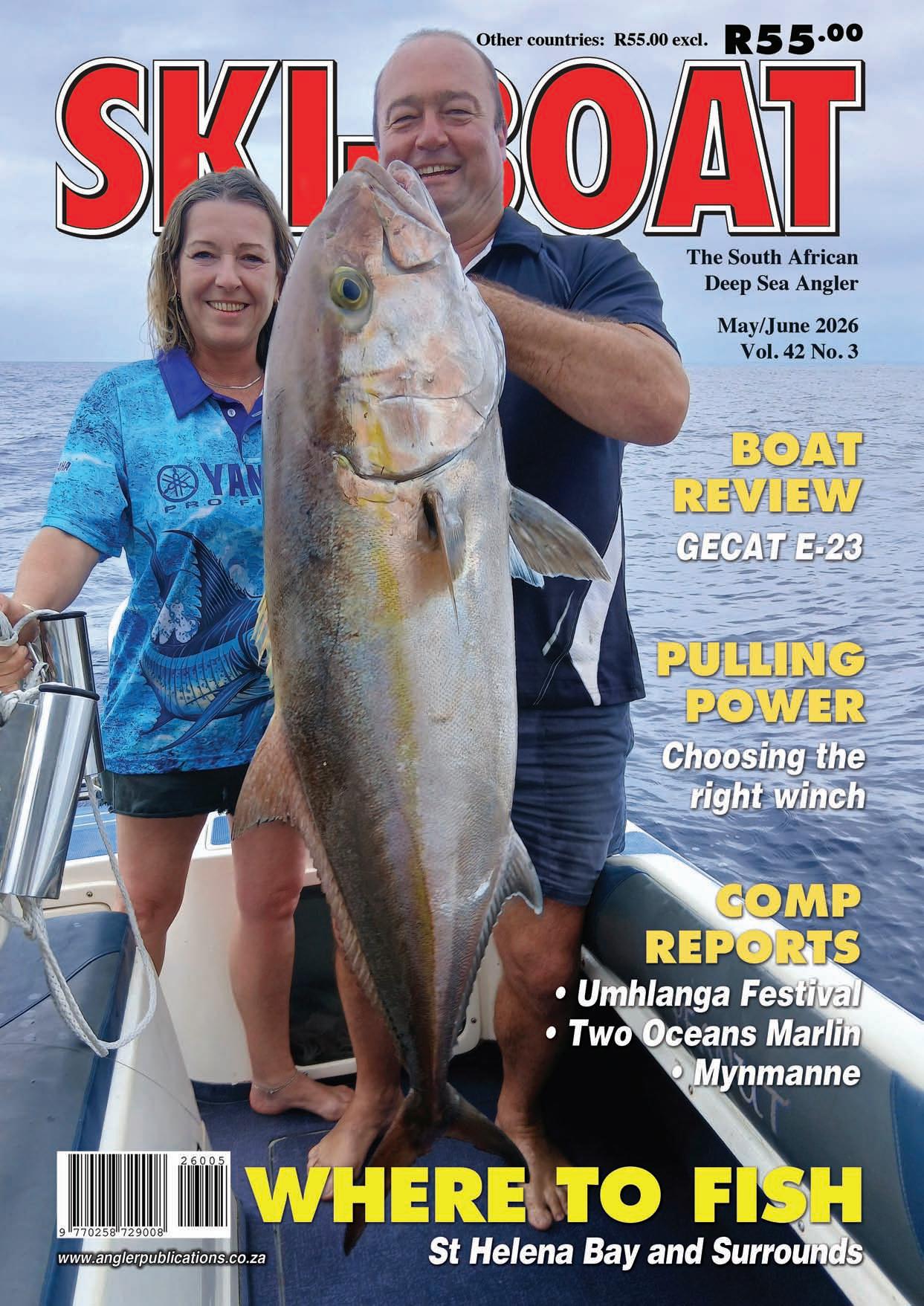 SKI-BOAT Magazine, ISSN 0258-7297, is published six times a year by Angler Publications & Promotions cc, Reg. No. CK 88/05863/23, and is distributed by On the Dot, as well as directly by the publishers to retail stores throughout South Africa.