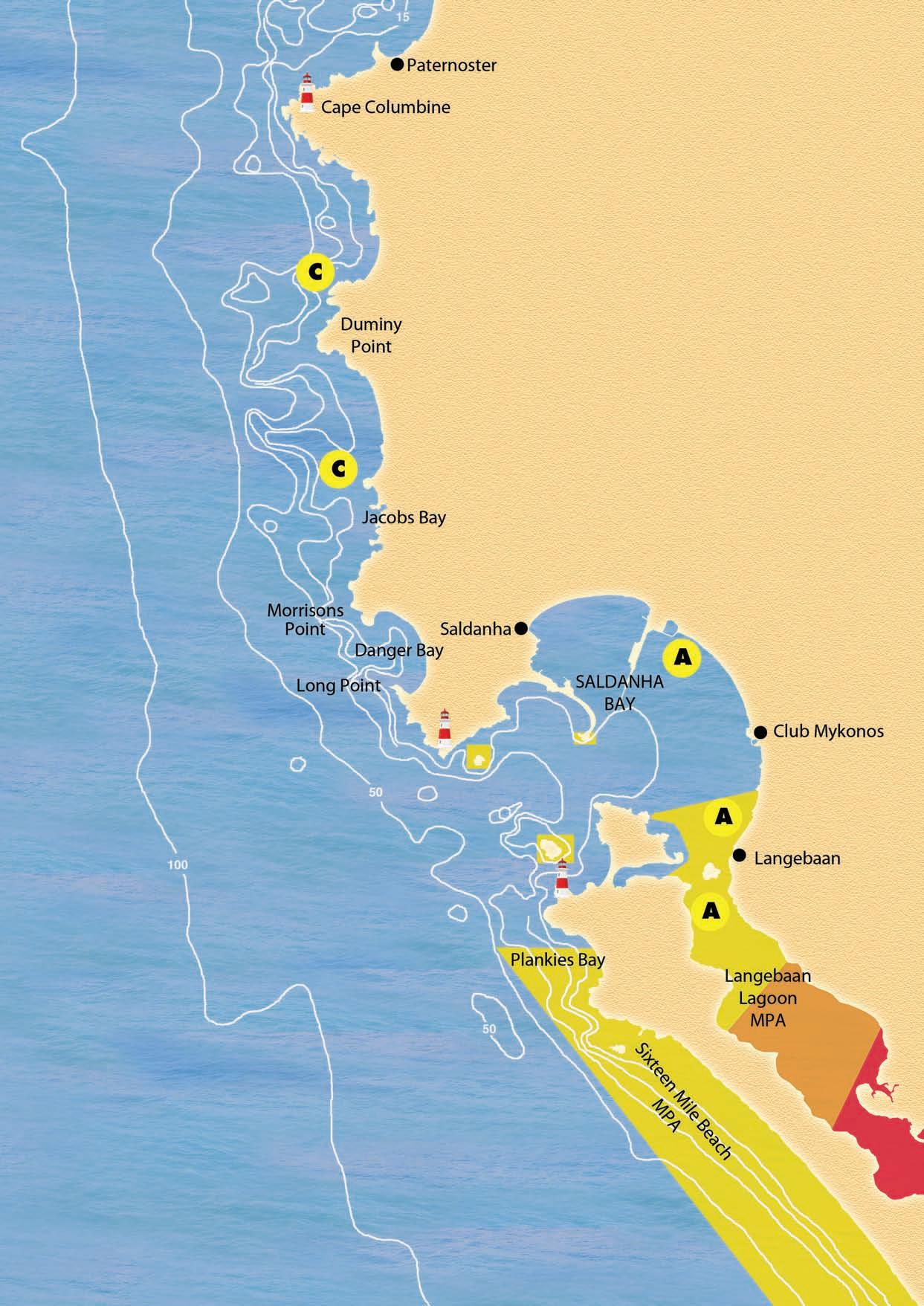 •Langebaan Lagoon and Saldanha Bay area up to Paternoster;