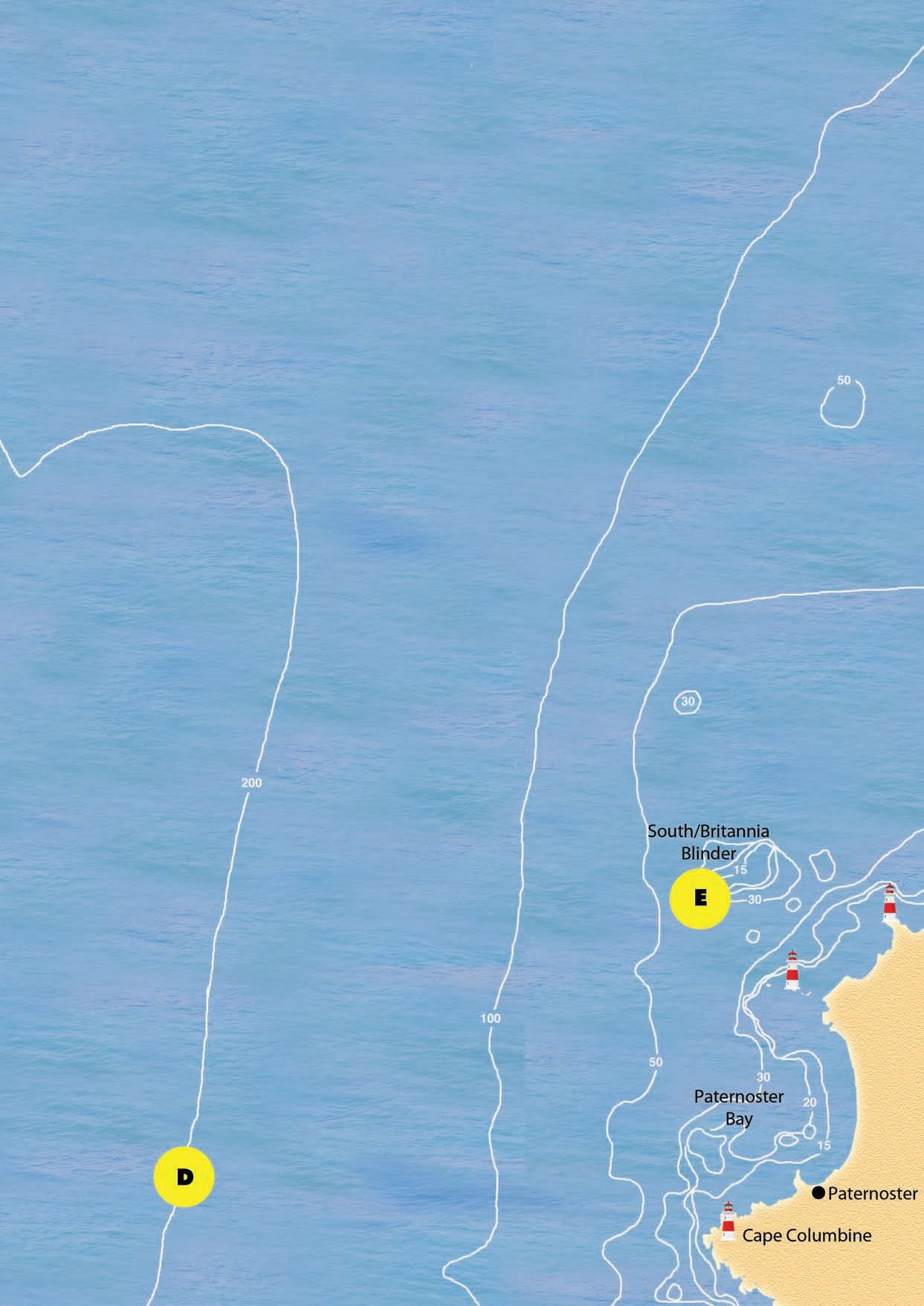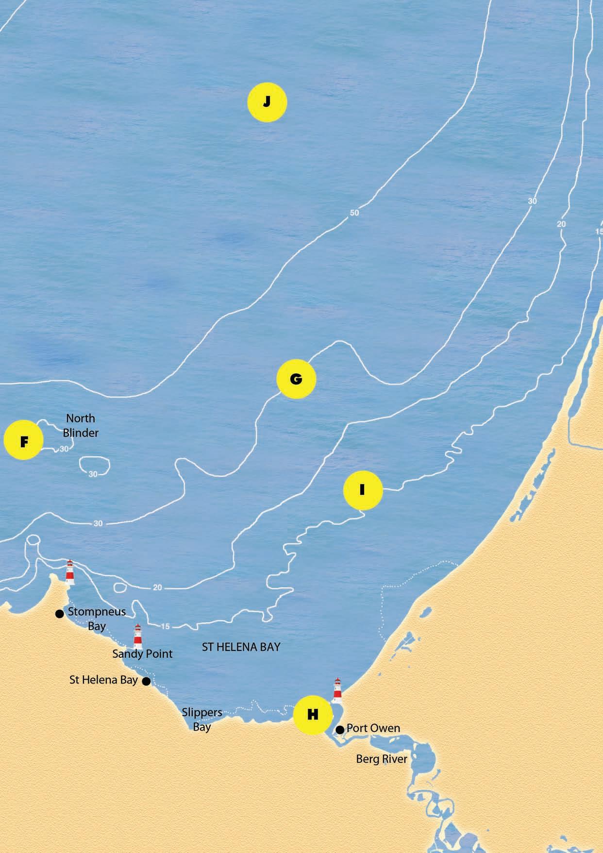 F.North Blinder.The search for snoek and yellowtail begins here,typically going north west.