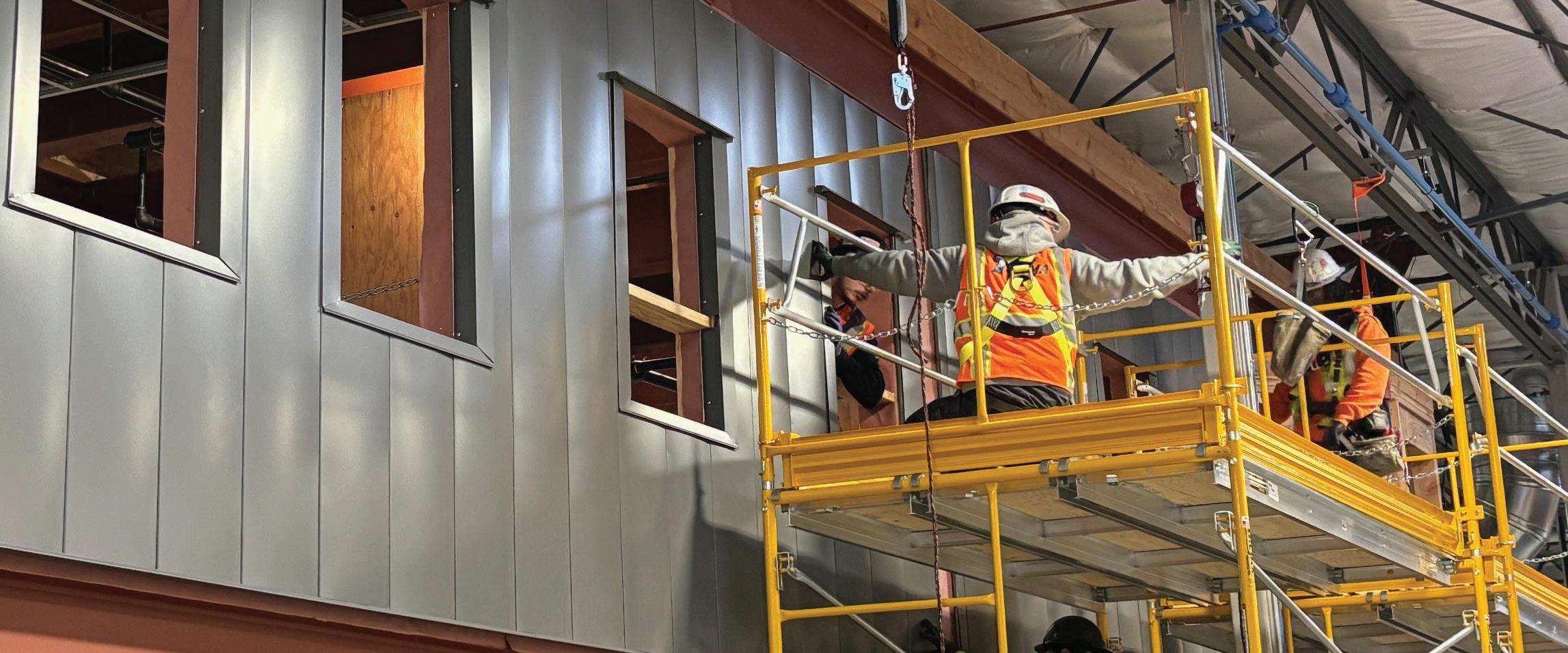 The Sheet Metal Workers and Bay Area Industry Training Fund recently developed an architectural wall panel installation class at the Livermore Training Facility, utilizing the Livermore training steel structure. This course is a hands on installation of ACM wall panels on the structure and incorporates layout technology using Trimble Total Station in the vertical plane. A student in the course learns OSHA regulations which govern scaffold erection and usage, architectural panel installation, and Trimble Total Station setup/takedown/layout. This course has been developed to train architectural wall panel installation in a real world environment with the use of technology in the installation process and job site safety.