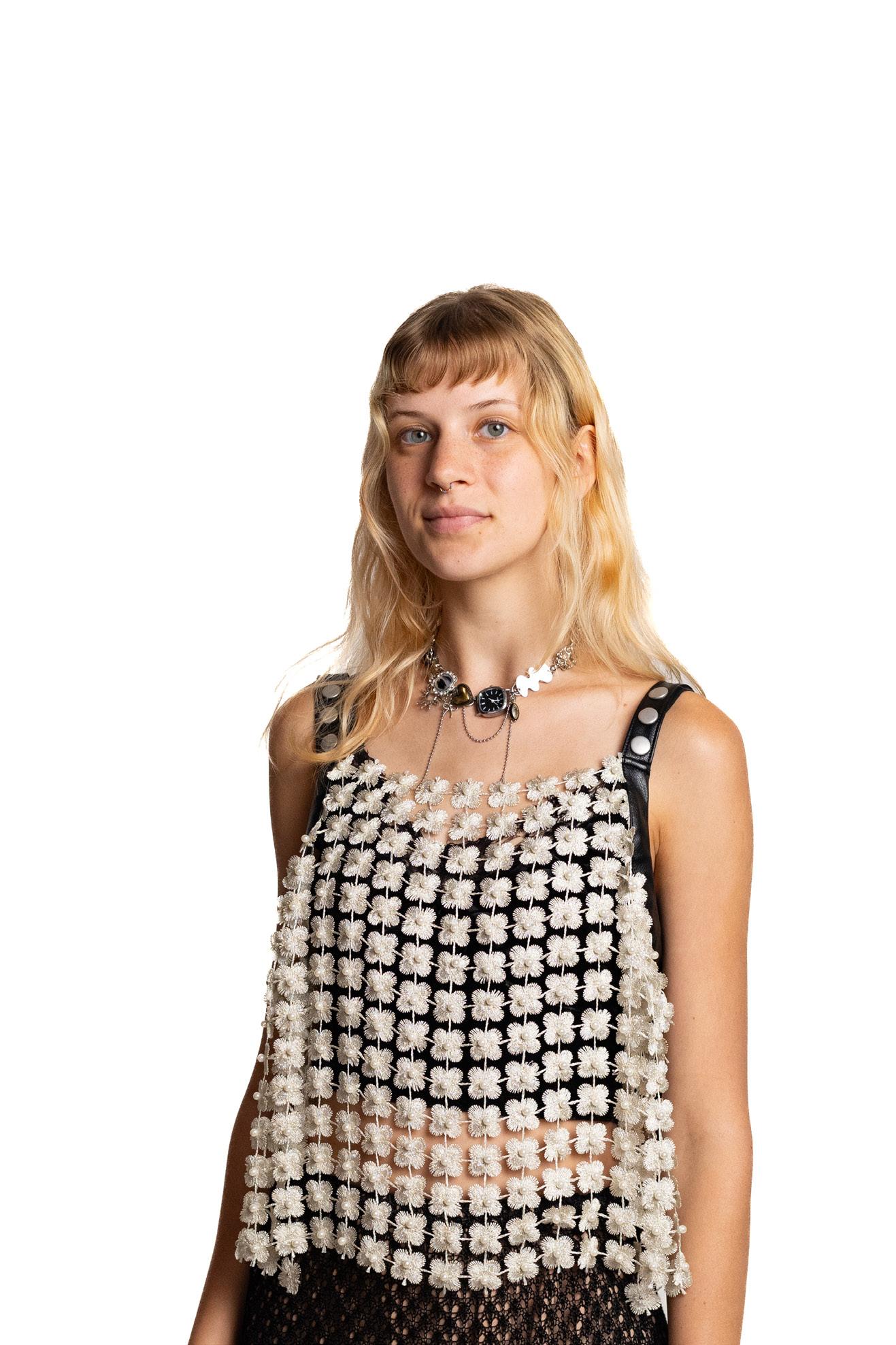 I buried my love for shimmery accessorization until my teenage years, where I bonded with other women who appreciated the same fashion, art, and media that I did. My confidence soared with the release of Euphoria (2019) and the following cultural surge of glittery make-up and accessories. Now, I merge the patterns I’ve always adored with the sparkle I was too afraid to flaunt as a kid. I know that as long as I allow myself to explore, my personal style will constantly evolve.”