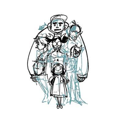 Hewlett’s co-creation of Tank Girl in the Deadline (1988) with Alan Martin, a British post-apocalyptic science fiction comic, elevated his artistic publication journey, and associated his unique drawing style with grimier, gritty “punk” references and narratives. Tank Girl eventually evolved into an unreleased comic strip titled The 16s featuring characters that at a glance, look similar to the final designs for the first generation of Gorillaz characters–especially with chimpanzee protagonist “Earl Monkey”. Just like the characters in The 16s the first debut album released by the Gorillaz has a very simple 90s British streetwear look, kicking off each of the characters’ personalities through their choice of clothing.