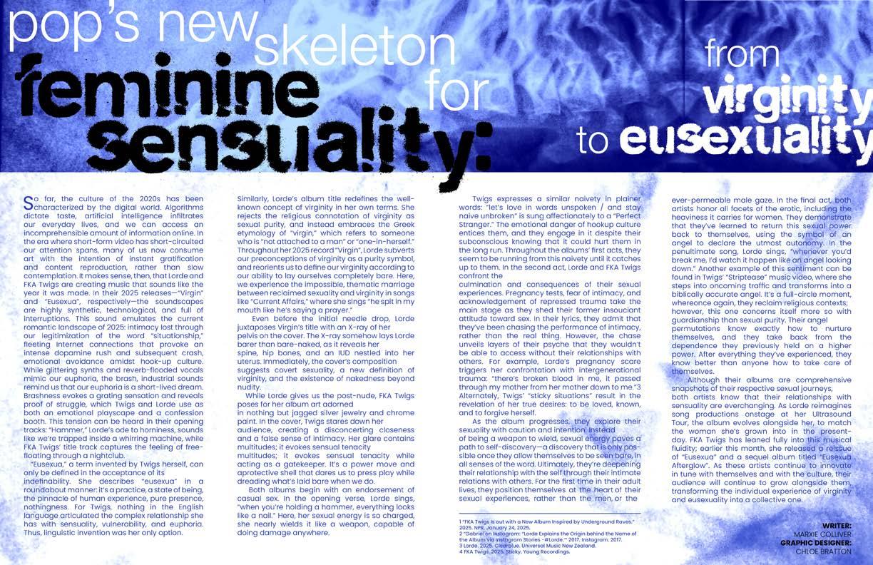 Our November digital issue is SHEI’s own collection of some of music’s most iconic moments. WRAPPED, gave our features writers the opportunity to honor different eras and styles of music, highlighting the impact music has had on both our identity and our ways of storytelling. As a result, through explorations of alter egos, deep dives into virtual bands, and much more, our writers were able to do exactly that and more, reminding us of the role music has had on each of our lives as both artists and people.
