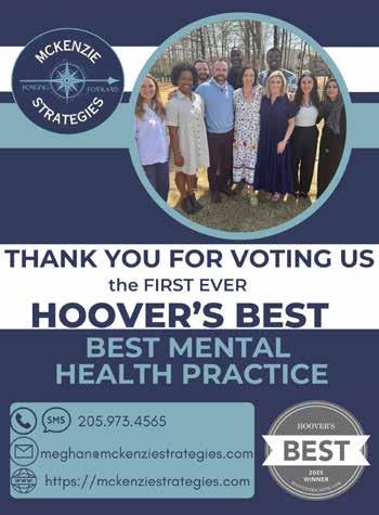 Hoover’s Magazine is published quarterly by Shelby County Newsmedia Inc., P.O. Box 947, Columbiana, AL 35051. Hoover’s Magazine is a registered trademark. All contents herein are the sole property of Shelby County Newsmedia Inc. [the Publisher]. No part of this periodical may be reproduced without written permission from the Publisher. Please address all correspondence (including but not limited to letters, story ideas and requests to reprint materials) to: Editor, Hoover’s Magazine, P.O. Box 947, Columbiana, AL 35051.