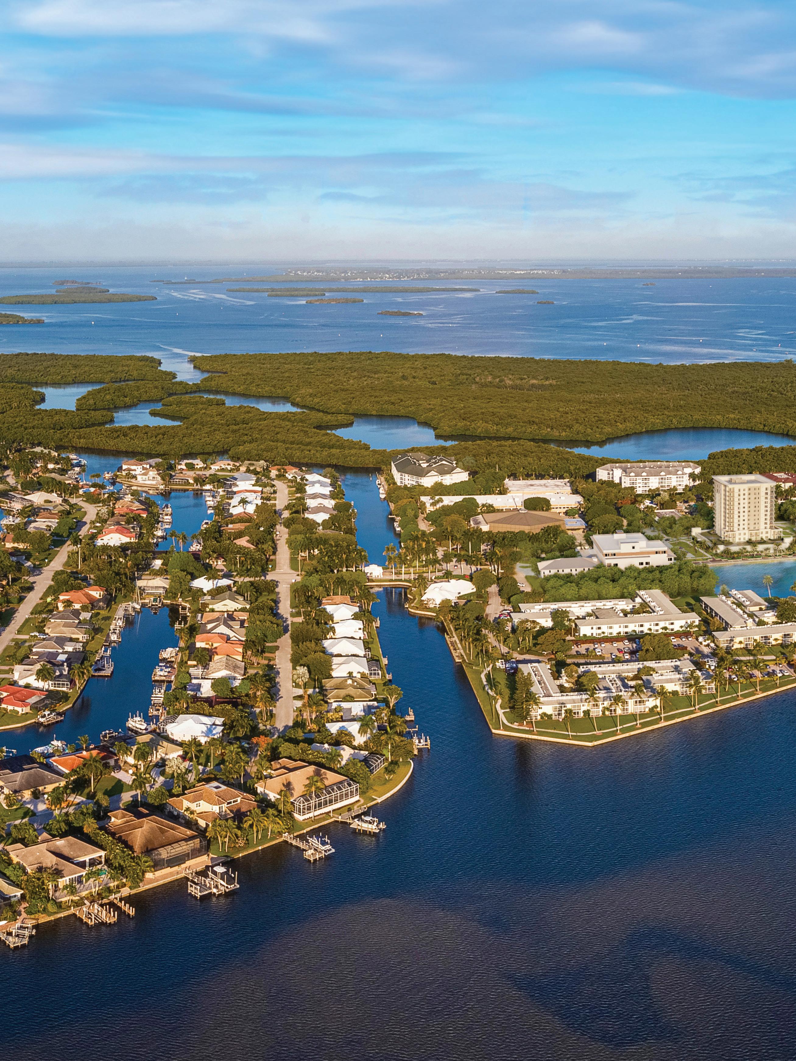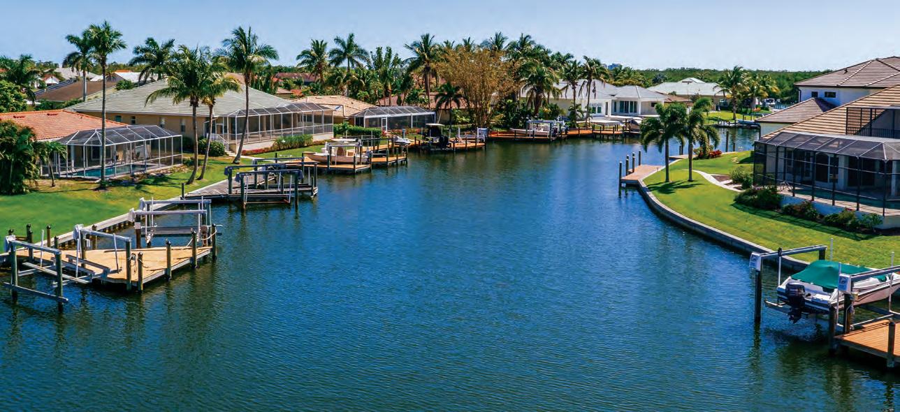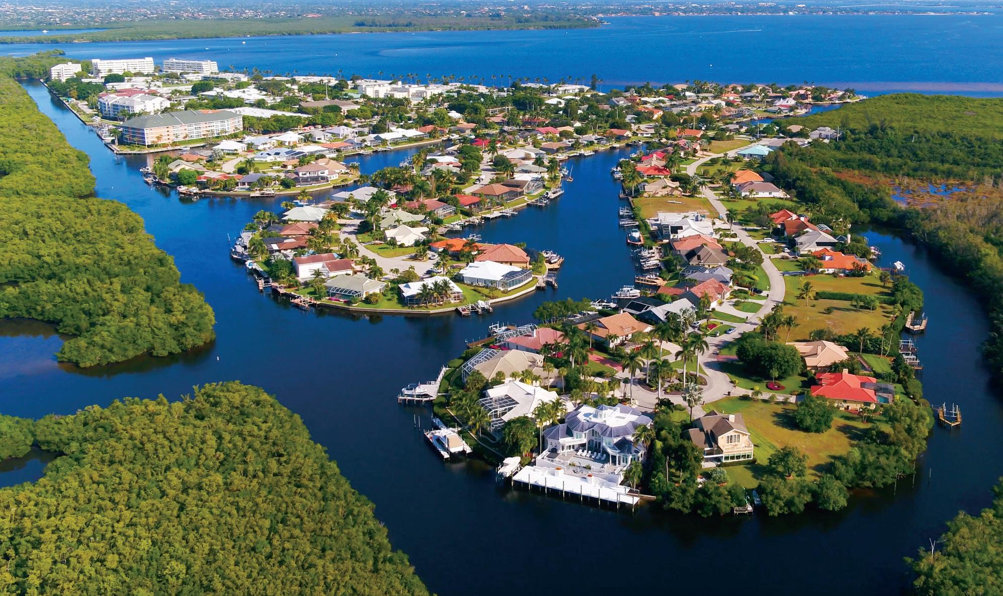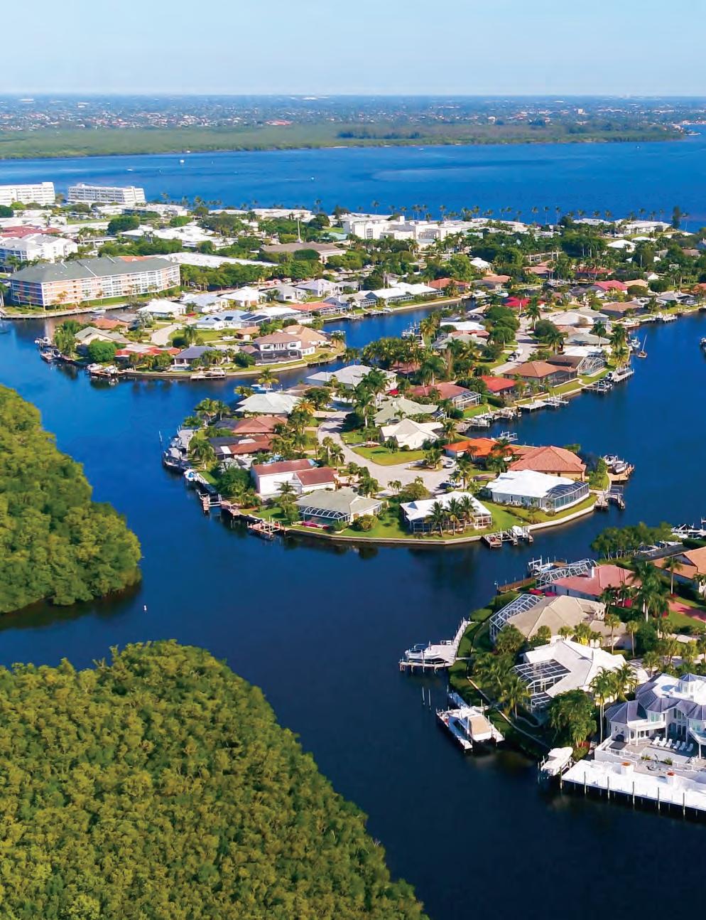 Palm Acres is a well-established single-family home neighborhood adjacent to the entrance of The Island. Featuring architecturallyunique designs, each home offers deep water access just minutes to the Gulf of Mexico.