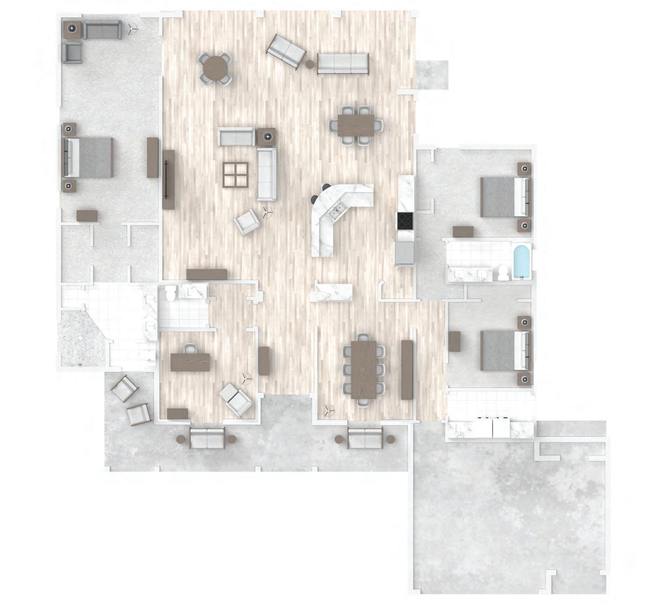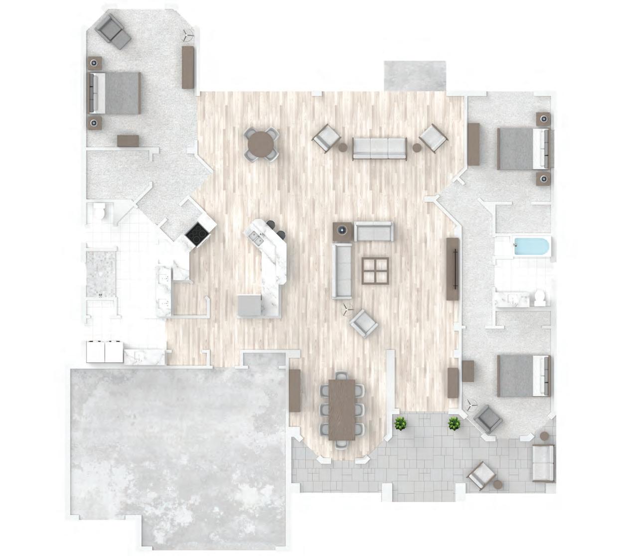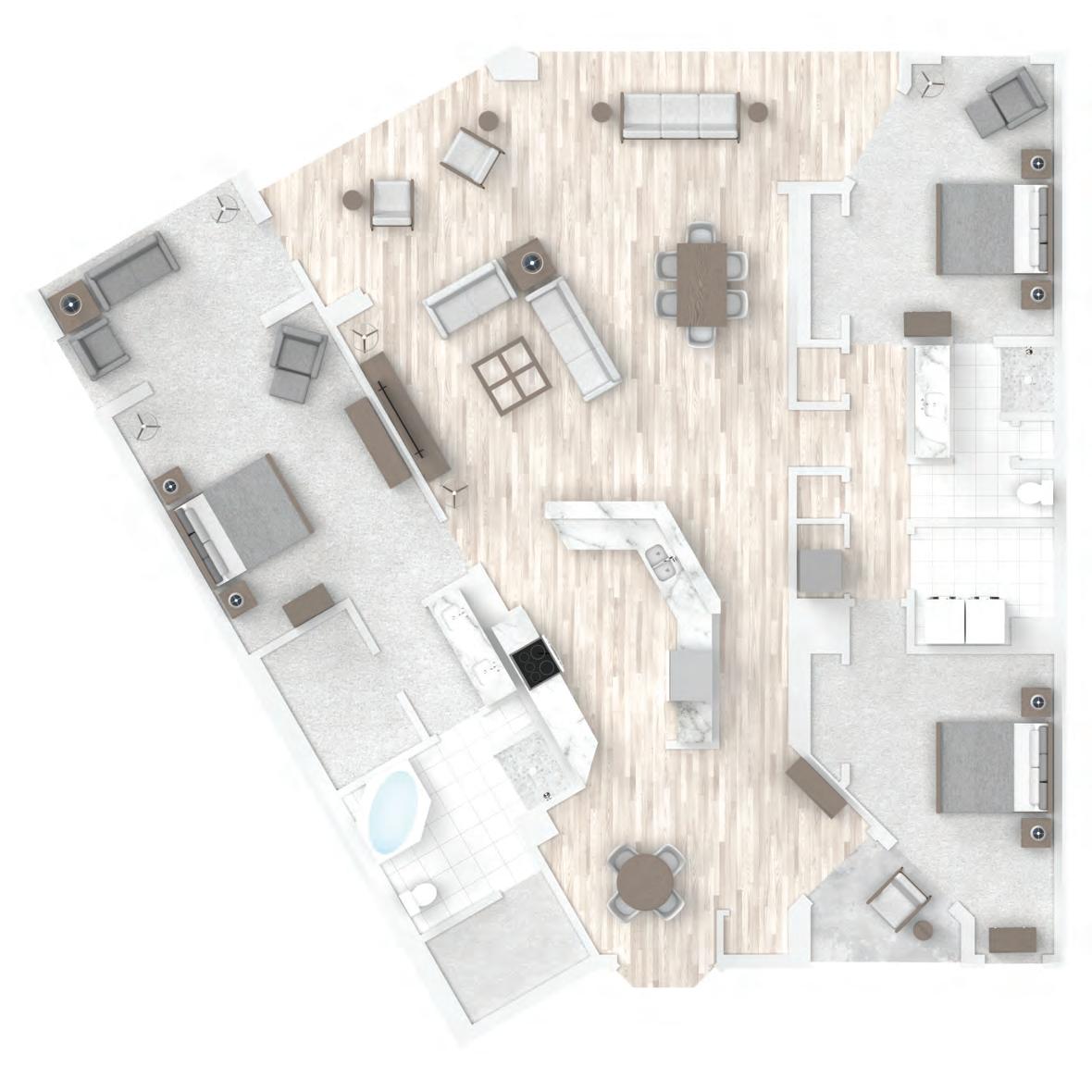 Dimensions are approximate and floorplans vary. Floorplans are artist's renderings only and are shown with glass-enclosed lanais. Some residences have screened lanais. Furniture is for illustrative purposes only.