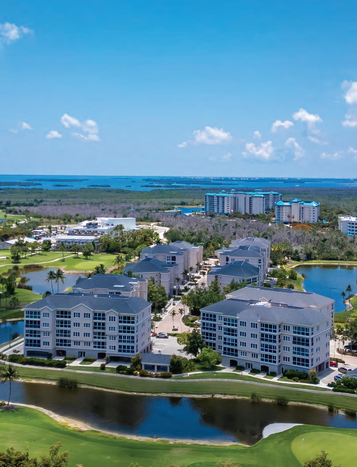 Bounded on the south and west by nature preserves of more than 400 acres, nature lovers will be delighted with its miles of trails and observation areas. The expansive water environment provides a never-ending source of enjoyment for birdwatching, model sailboat racing, enjoying breakfast on the patio, or savoring a sunset over the Gulf.
