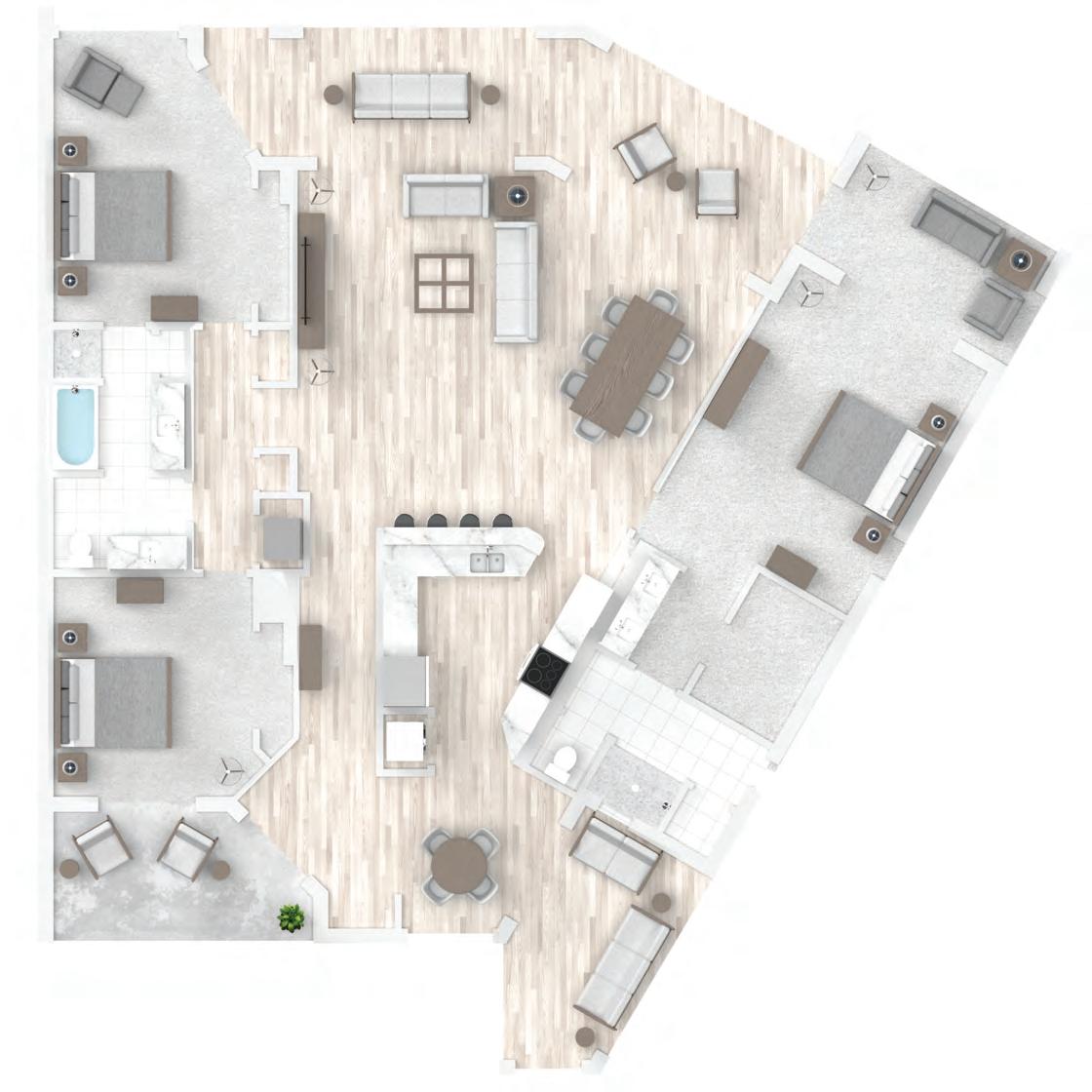 Dimensions are approximate and floorplans vary. Floorplans are artist's renderings only and are shown with glass-enclosed lanais. Some residences have screened lanais. Furniture is for illustrative purposes only. A B C A-75 LIVING/DINING 13′-7″ x 24′-8″
