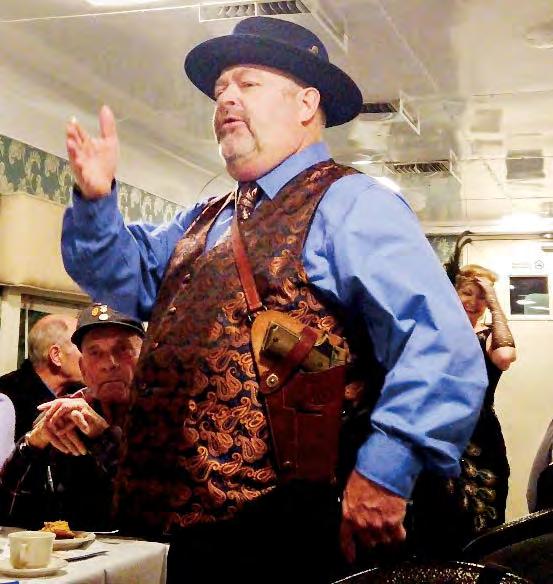 All Aboard the Murder Mystery Dinner Train! A group of residents and family members recently experienced a special night out on the Seminole Gulf Railroad. While embarking on a train ride towards the edge of the Caloosahatchee River, participants enjoyed a delicious five-course dinner with poached salmon, prime rib, and roasted chicken for their main entrees. In between courses residents were immersed within the unique theatrical experience “Two for Flinchin’,” as performers transformed the train car into their stage. During the performance, the murder of a criminal lawyer was discovered, and it was up to residents to keep track of clues to determine exactly who dunnit. Although Shell Point’s finest detectives were unable to correctly identify a suspect, the event made for a great night full of fun and socialization.