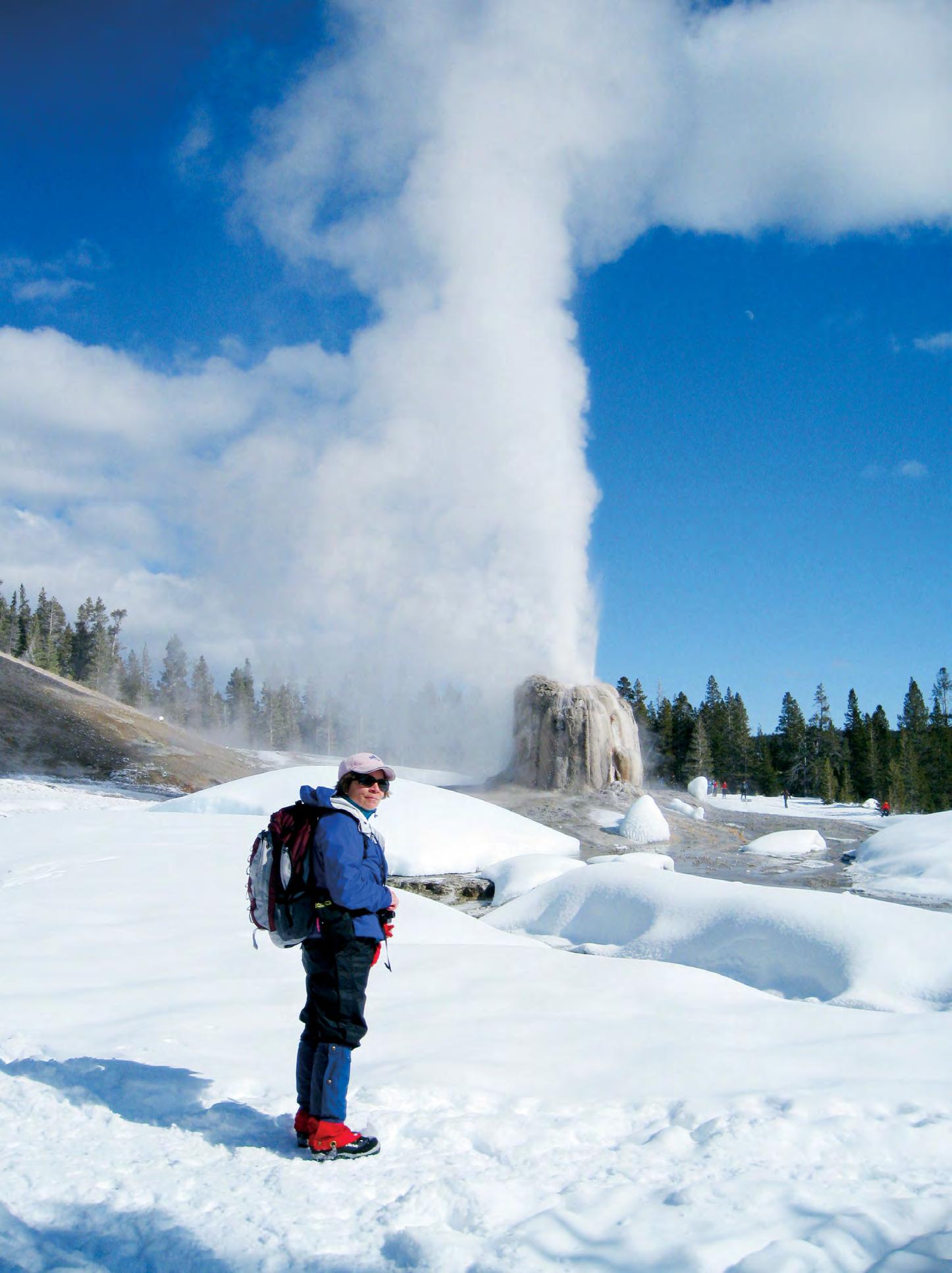 Chris embarked on a four-mile cross country ski from Old Faithful to watch the eruption of Lone Star Geyser in Yellowstone National Park.