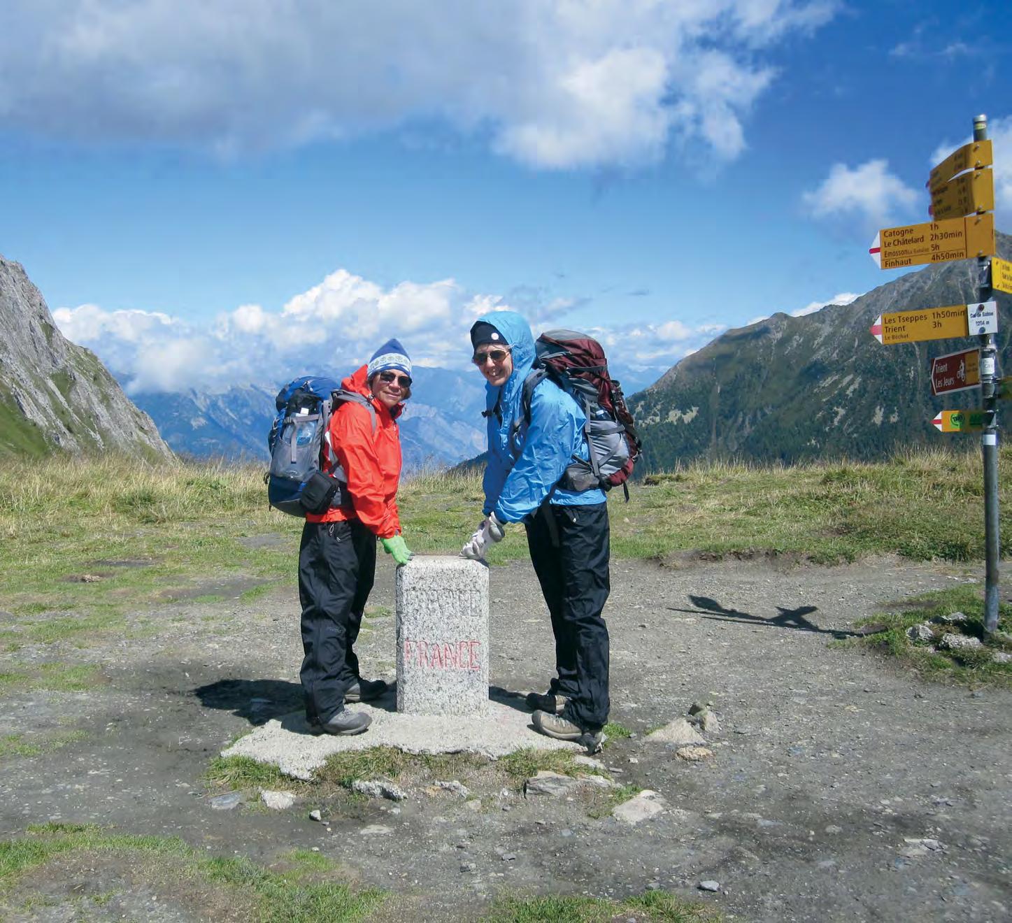 Chris (in Switzerland) and her best friend Debbe (in France) on the 10-day trek “Tour Du Mont Blanc.”