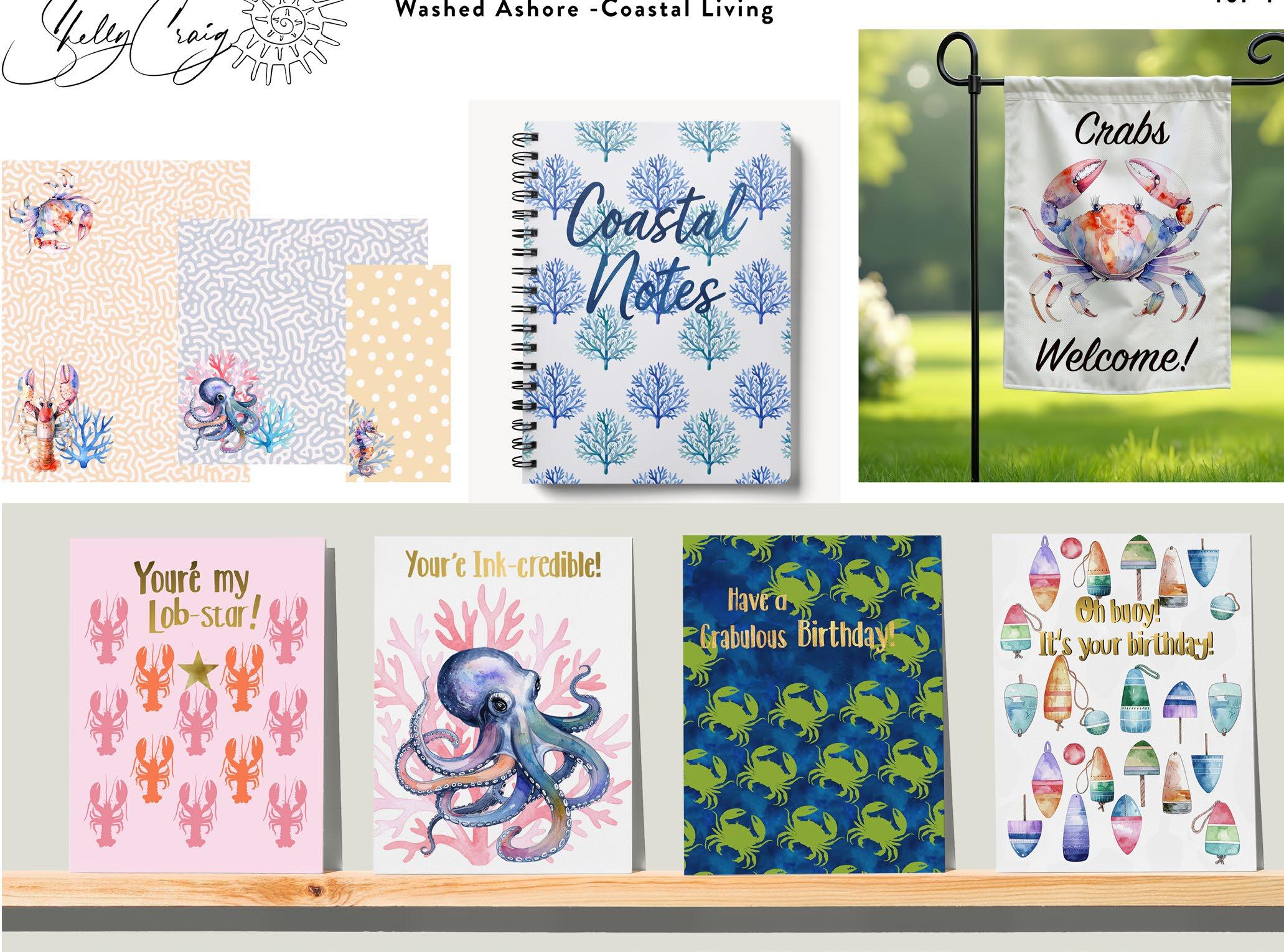 Today, Shelly creates cohesive, production-ready collections that blend traditional watercolor and ink illustration with modern digital workflows. Her work is especially well suited for home décor, wall art, tabletop, stationery, fabric, and lifestyle products, and she thrives when designing to clear creative briefs.