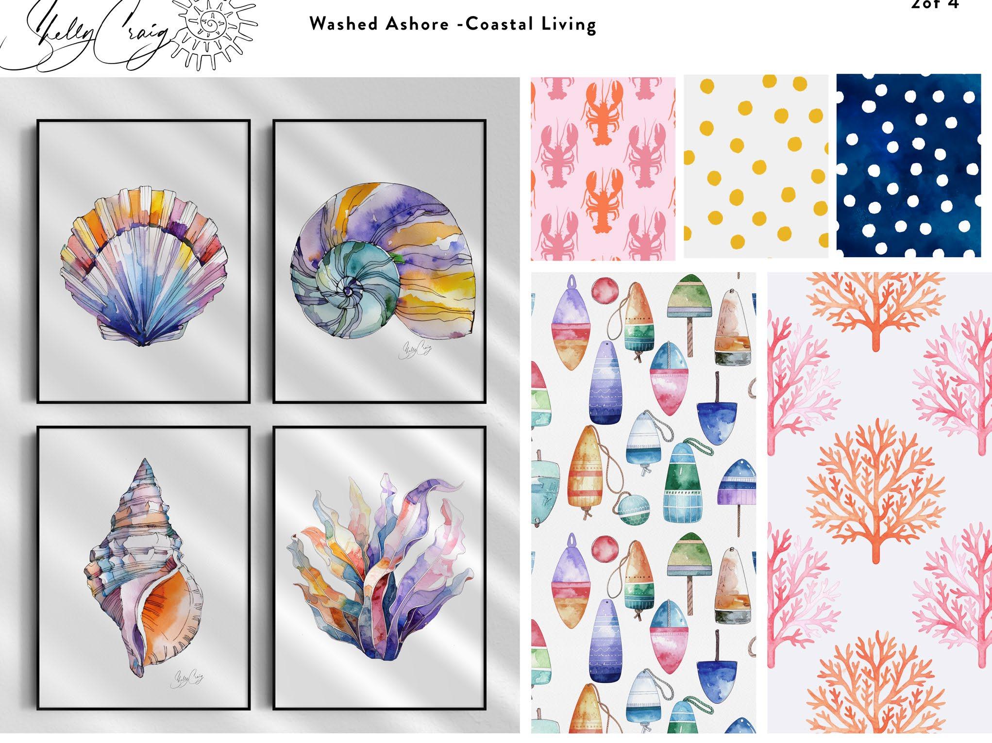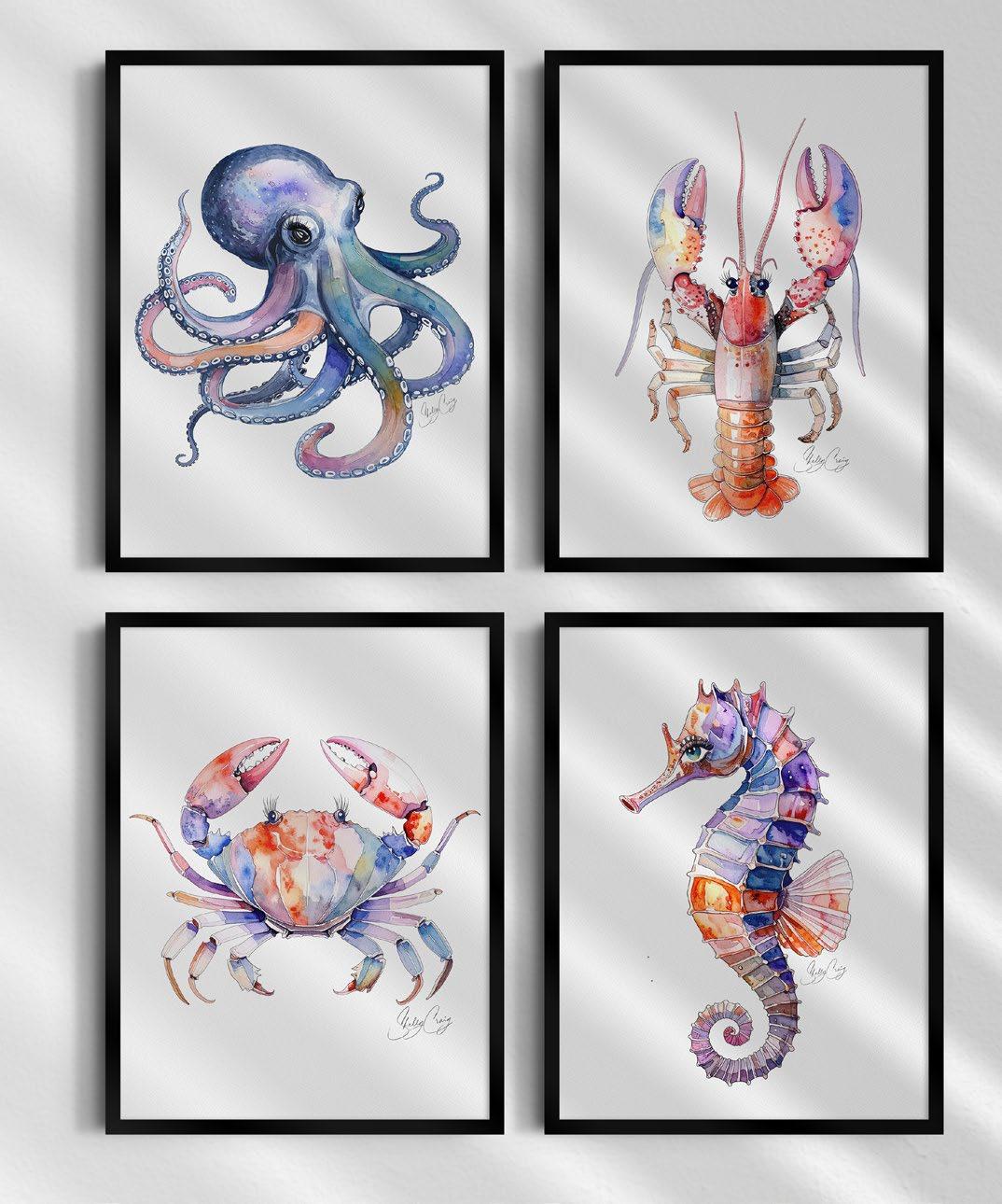 Shelly’s artwork is currently licensed with P&B Textiles, with her debut fabric collection scheduled for release in 2026. She is also licensed with Stupell Industries, whose products are distributed through major online retailers and big-box stores. Additional licensed partnerships include mission-driven organizations focused on reef conservation. Her work has also been selected for inclusion in the 2026 industry Trend Report by Cat Coq, curated for art directors and manufacturers.