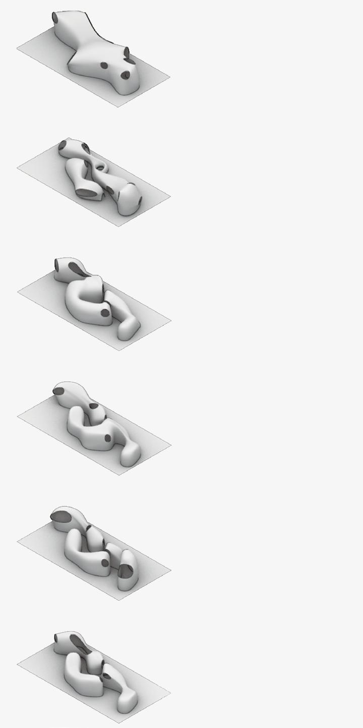 The concept of urban caves comes from the fact that the accumulation of plastic causes a large amount of space waste, and the decomposition process of extracting plastic creates an ironic space. The continuous use of plastic forces people to constantly fill their living space with garbage, so that the living area becomes like the cave where primitive people lived.