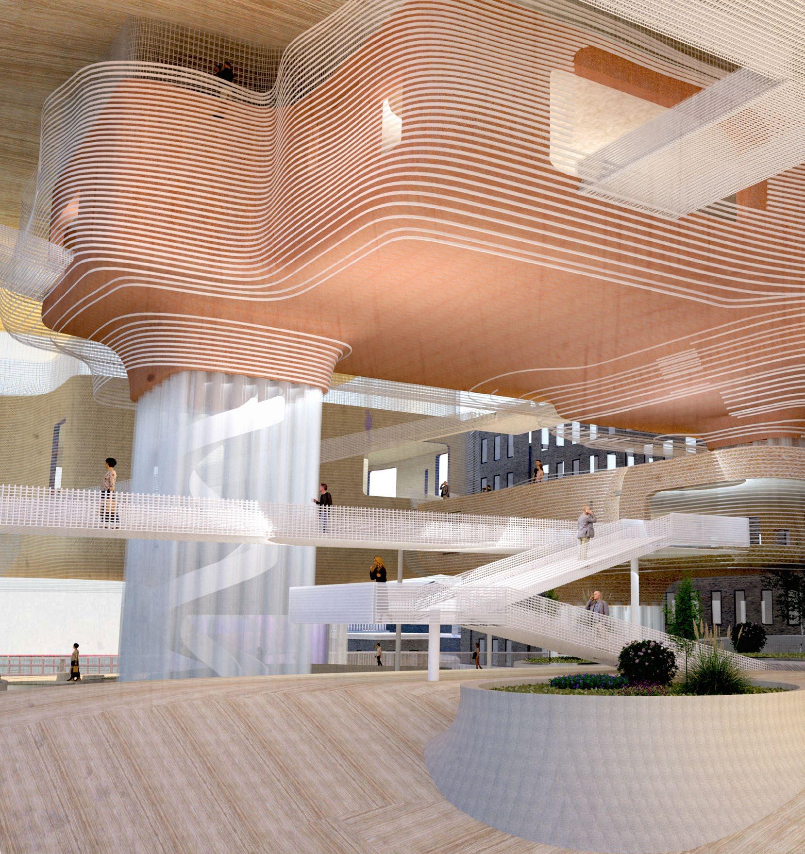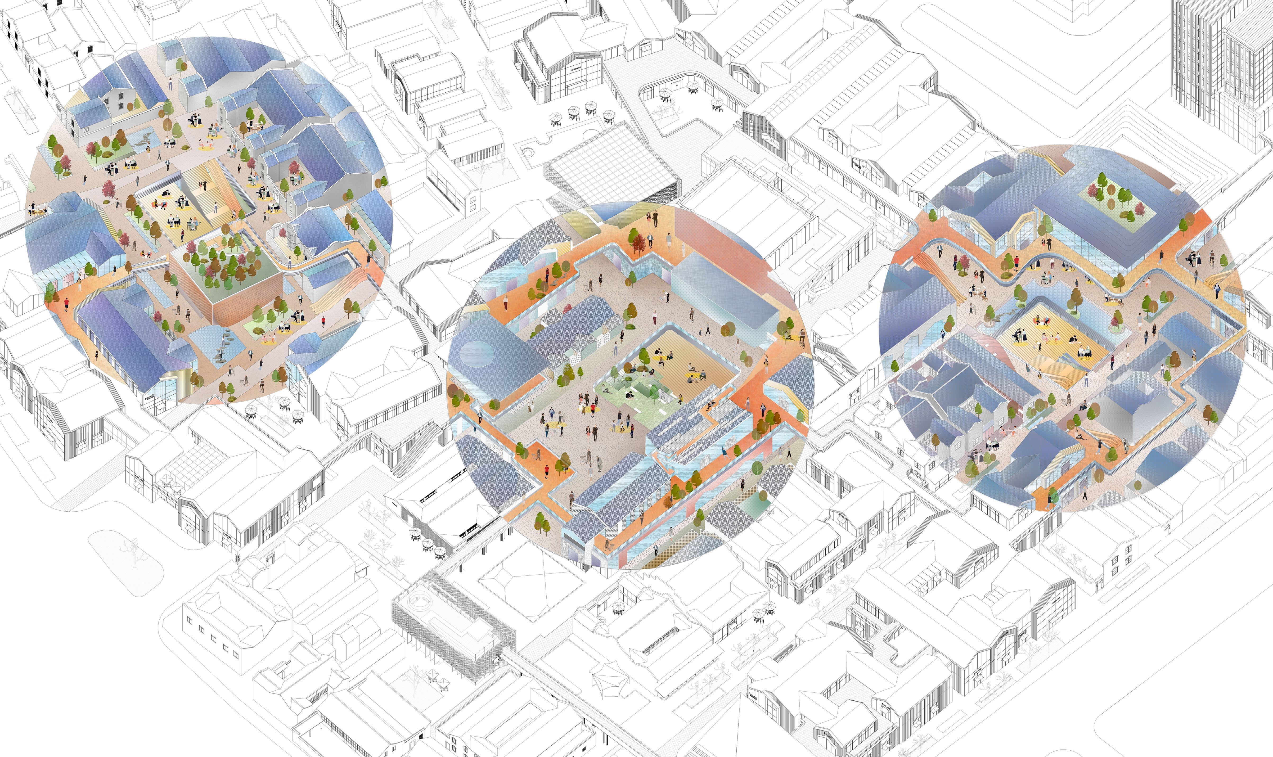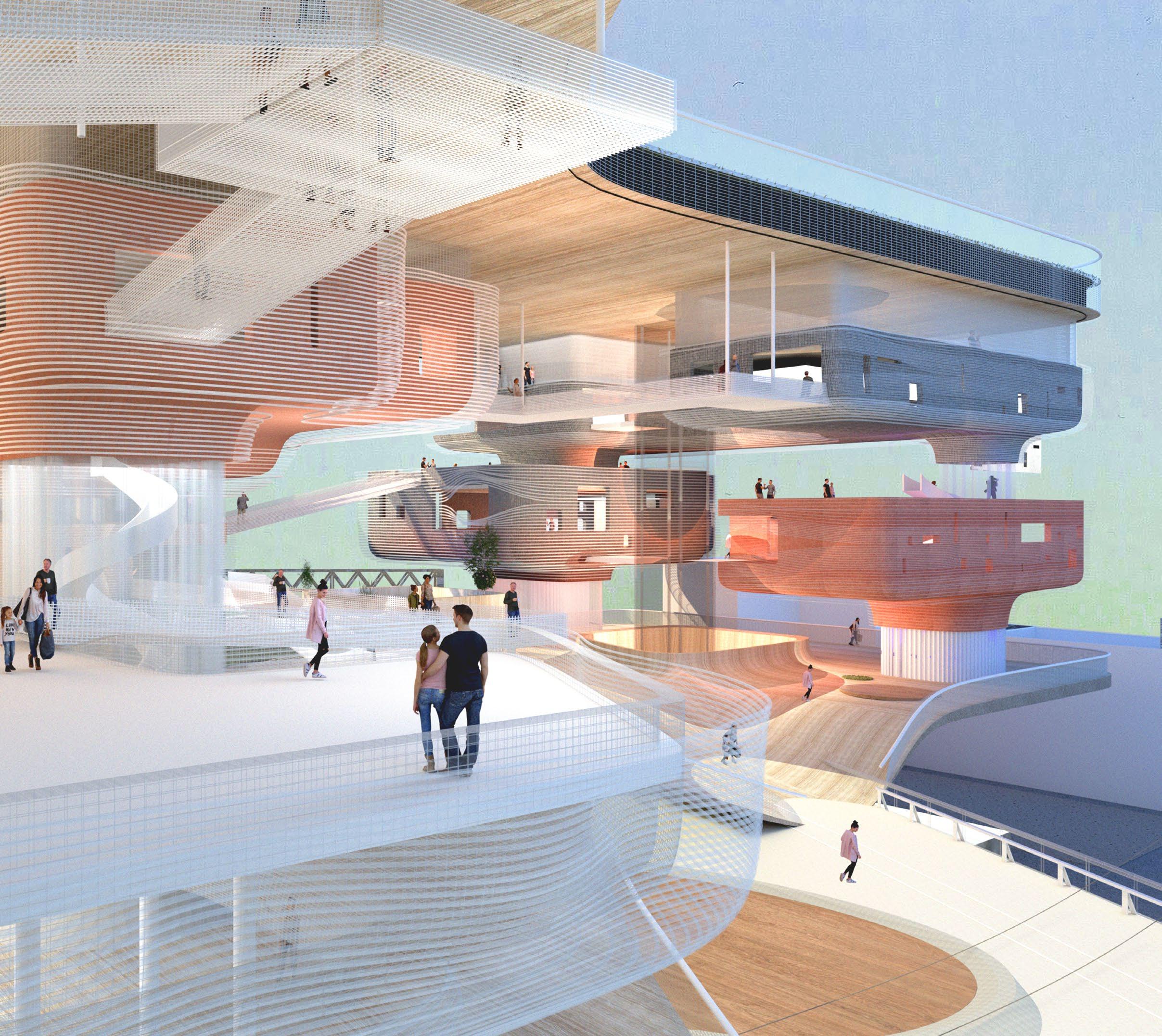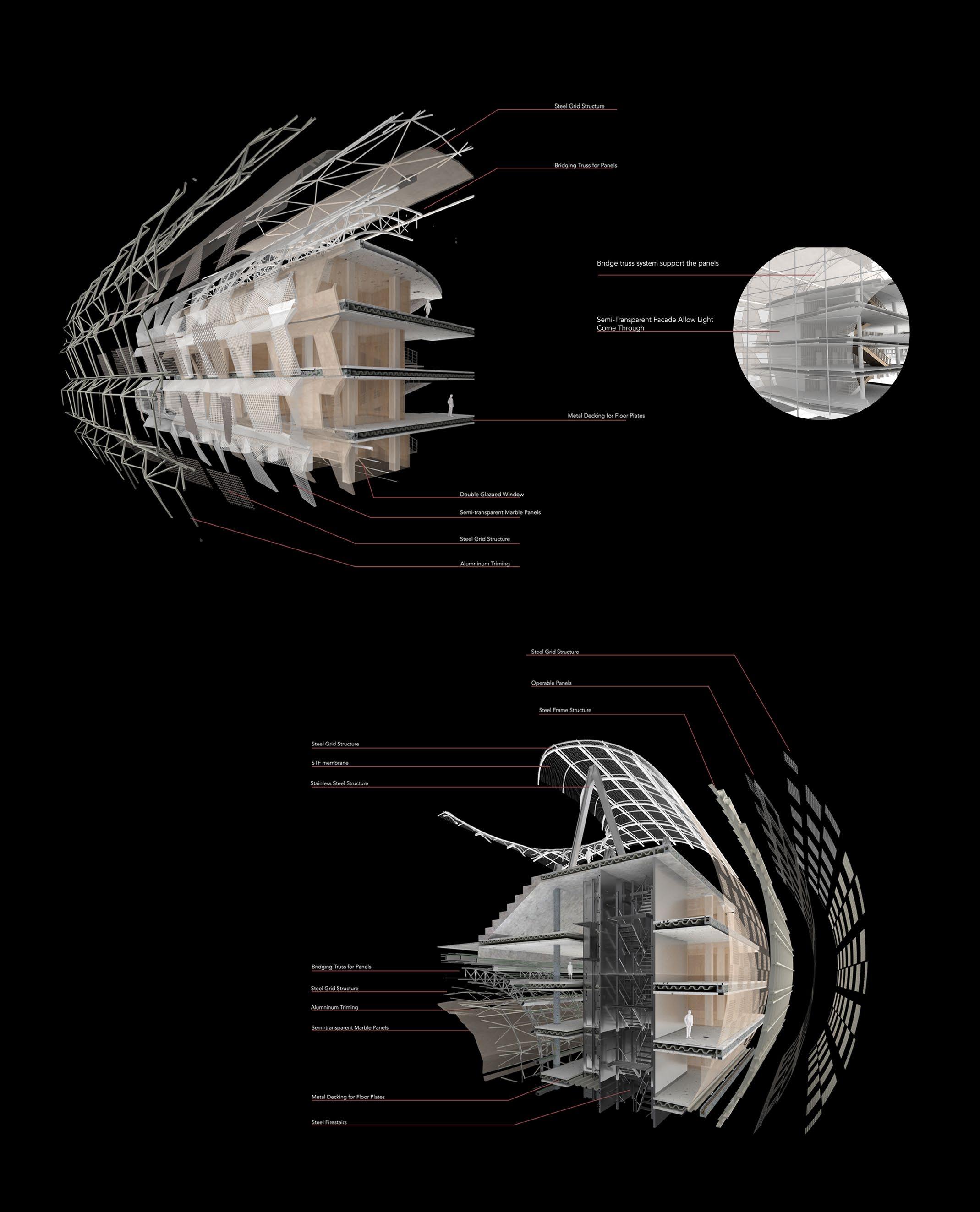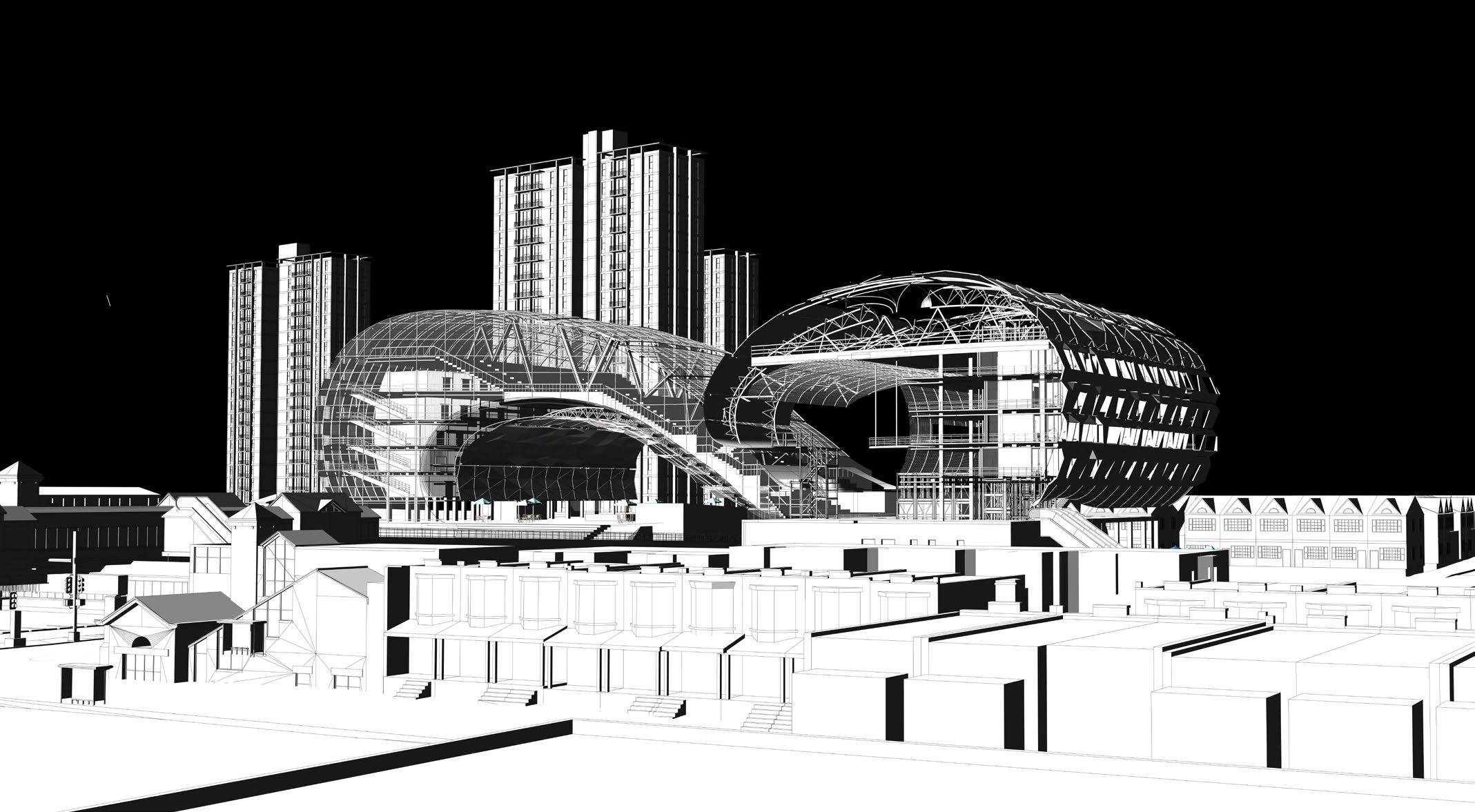 The project seeks to undermine the autonomy of the different programs by rethinking their relationship to the collective public spaces by interconnecting them with a series of catwalk. This empowers the users to define their own way of navigating the project and engaging with the diverse programmatic opportunities that await them.