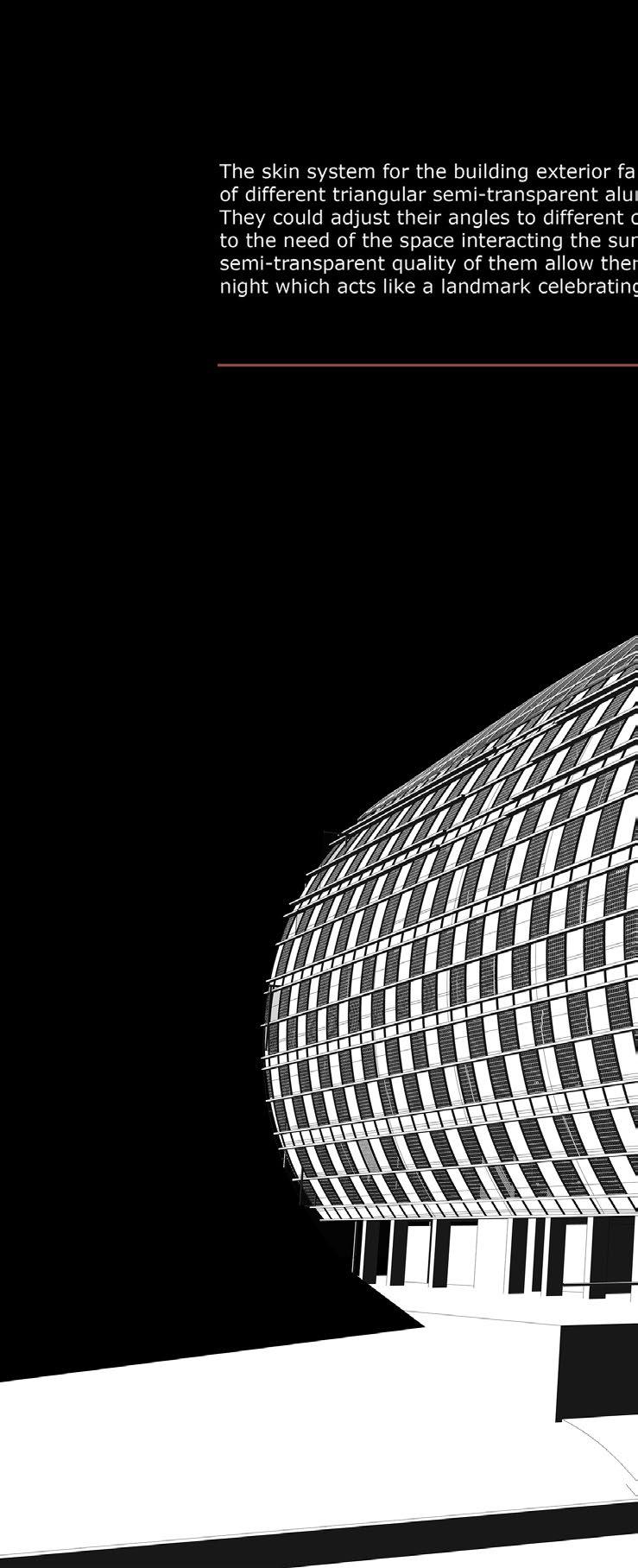 The two sides of the building facade is designed with two different languages targeting two groups of music creators, from new pop music to old traditional jazz music creators. The other part of the building is mainly composed of orthogonal panels, which give a more uniform and ordered sequence for the jazz music creators. The angular division of the facade panel provides a dynamic coherence between the music and the creator’s living space.