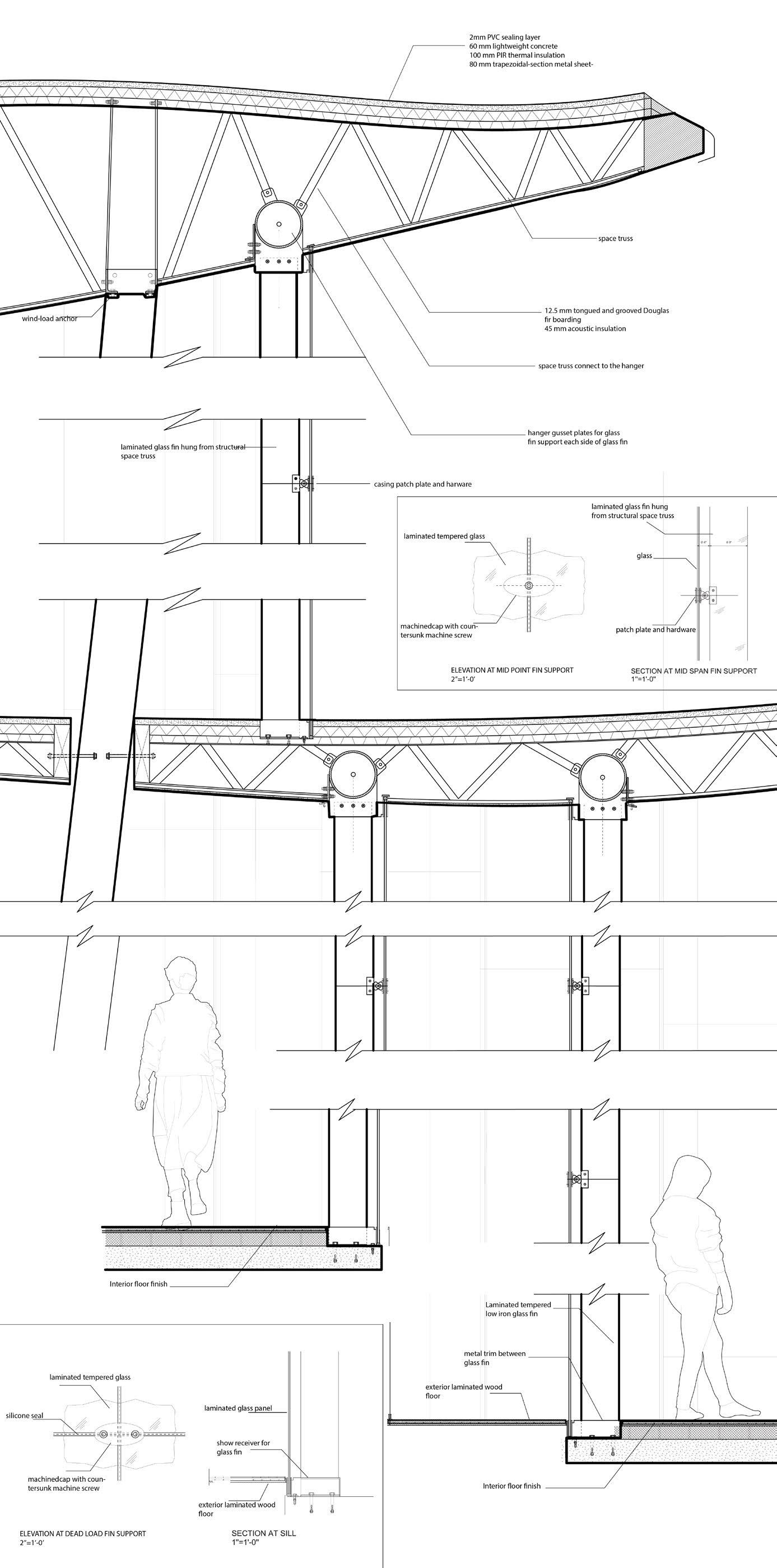 10 I Detail Section I 02 03 04 05 06 07 08 09 01 01 02 03 04 05 06 07 08 09 Interior Floor Finish Elevation of Fin Support Window Sill Section Column Roof Connection Laminated Glass Section Wind Loac Anchor Fin Elevation Window Fin Support Roof Truss Structure