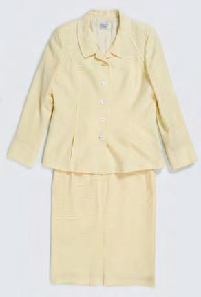 Vintage cream waffle weave matching two piece by English Designer Caroline Charles - single breasted jacket with pencil skit UK16