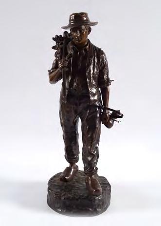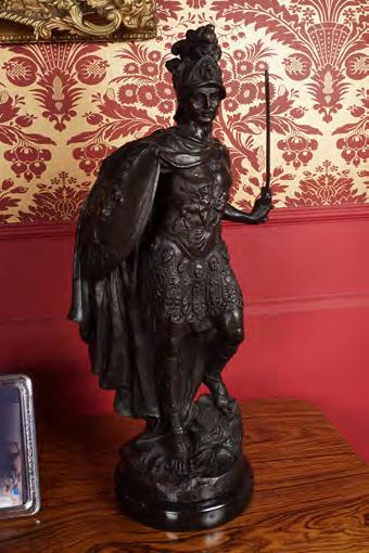 Figure of a warrior, together with a walking stick and shield. 90 cm. high