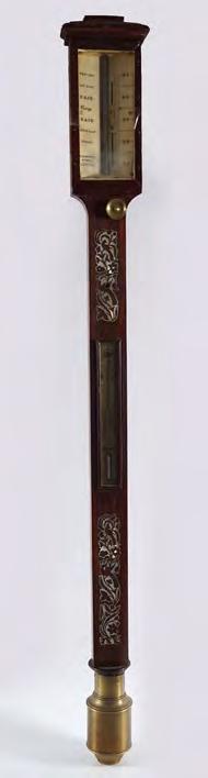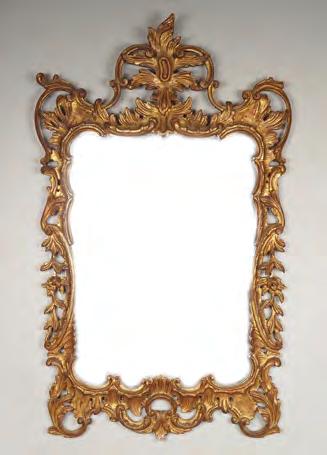 the rectangular bevelled plate with rounded corners, with a parcel gilt and profusely inlaid frame, below a broken arched swan neck pediment. 118 x 63 cm.