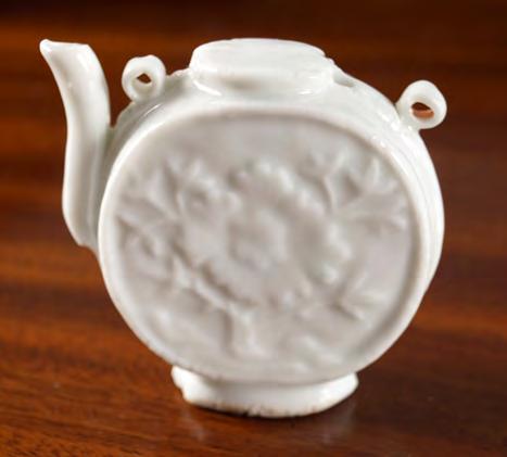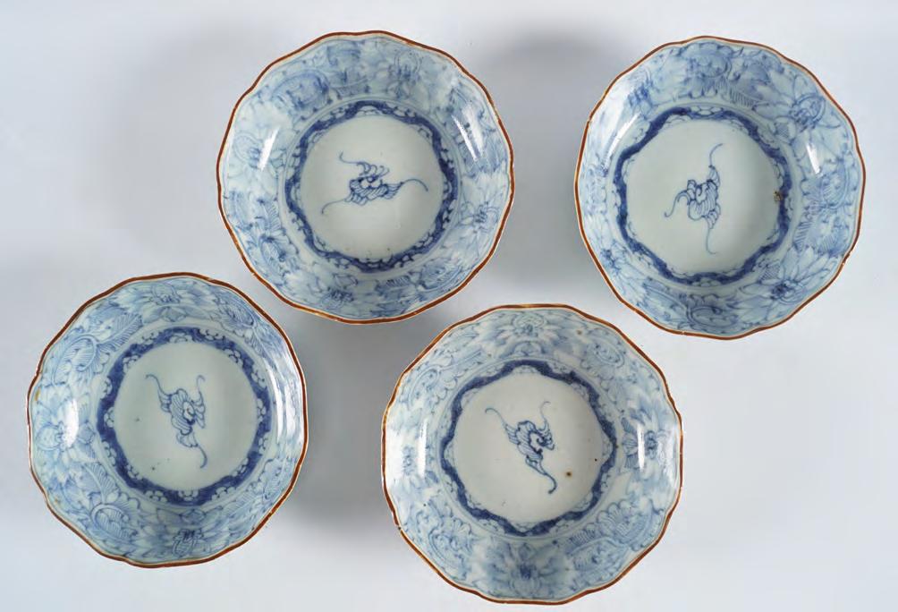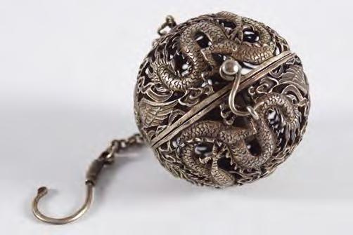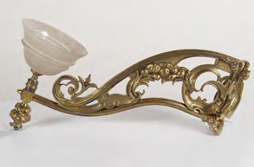 the circular bow, raised on a tripart griffin stem and reticulated circular base, raised on scroll supports. 28 cm. high; 26 cm. diameter