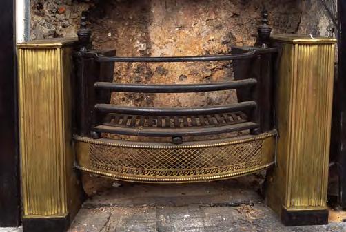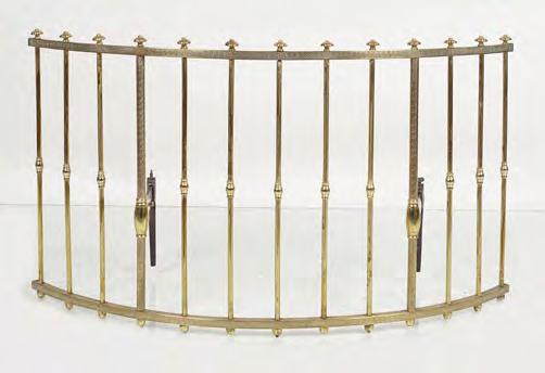 18TH-CENTURY DUBLIN BRIGHT CUT BRASS FENDER of curved outline with pierced ornithological decoration. 20 cm. high; 150 cm. wide