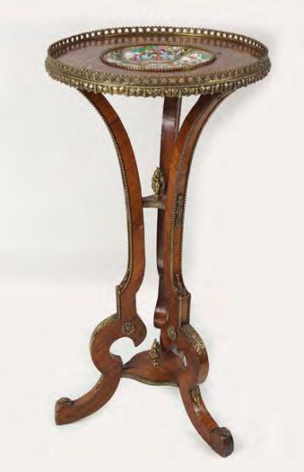 by Schuller à Paris, with painted porcelain plaque, after Raphael Sanzio. Depicting the Madonna and child with saint John the Baptist. 60 cm. high; 27 cm. wide