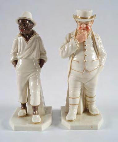 Man holding a vase with a dog at his feet. Nymph holding a mandolin with a fawn at her feet. Porcelain mark R. 1762. 23 cm. high; 18 cm. wide; 16 cm. deep