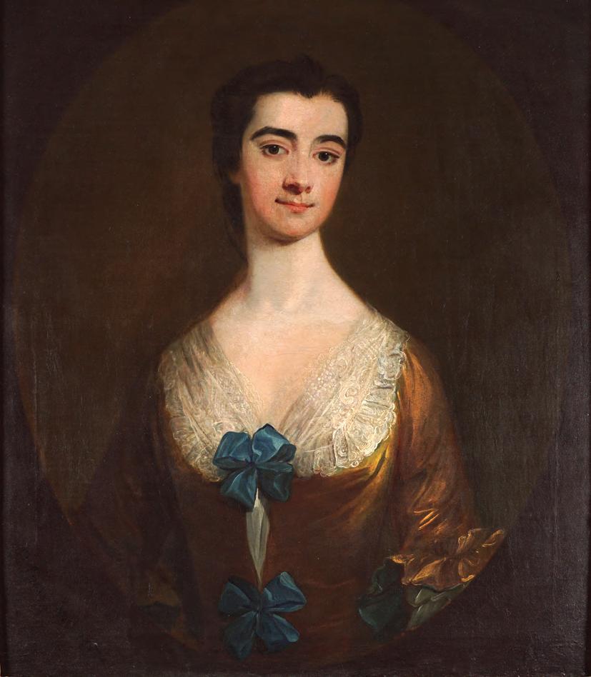 Woman with braided hair, wearing a lace trimmed dress and cameo pendant. 49 cm. high; 35 cm. wide; 23 cm. deep