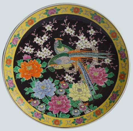 of circular form, depicting exotic birds amongst blossoms. 46 cm. diameter