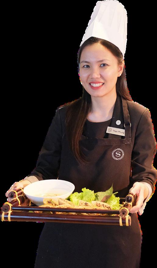 Hôi còn học đại học, tôi đã lân đâu tiên thử làm món bánh tráng cuôn thịt luộc. Tôi cẩn thận luộc thịt, thái lát mỏng, rôi chuẩn bị rau sông thật tươi: xà lách, các loại rau thơm, dưa leo và chuôi xanh. Cuôn mọi thứ lại băng bánh tráng thì hơi vụng vê lúc đâu, nhưng tôi thật sự thích quá trình đó Nước châm chính là điểm nhân hoàn hảo, đậm đà và hơi cay nhẹ Bữa ăn trở nên đặc biệt hơn khi tôi được chia sẻ cùng gia đình. Nó khiên tôi nhớ ra răng món ăn không chỉ để thưởng thức, mà còn là cách để kêt nôi mọi người. Và tôi đã thây tự hào khi mang một món truyên thông trở lại trong căn bêp nhỏ của mình. ⼤学时,我第 次做了⼲煎饼猪⾁卷。我⼩⼼地煮熟猪⾁, 切成薄⽚,准备了新鲜的蔬菜 ⽣菜、⾹草、⻩⽠和⻘⾹ 蕉。⽤⽶纸包裹这些⻝材失败了好⼏次,但我很享受这个过 程。