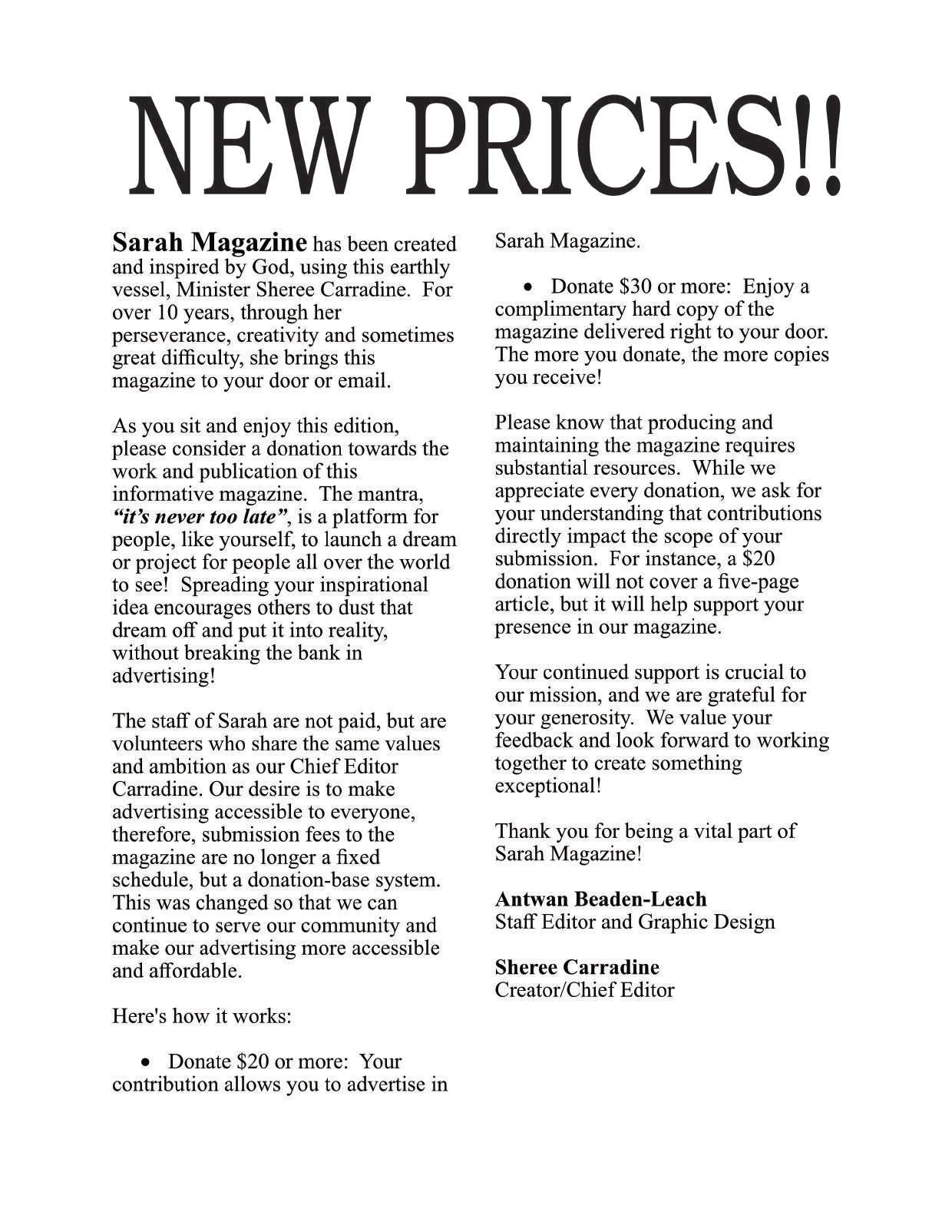 Minister Sheree Carradine Creator & Chief Editor, Graphics Sarah Magazine