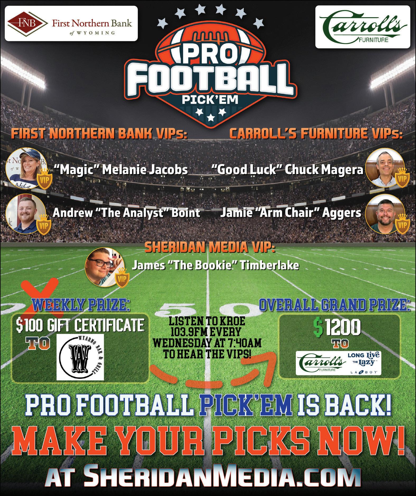 Call 307-672-7421 Email countrybounty@ sheridanmedia.com or stop by 1716 KROE Lane, Sheridan