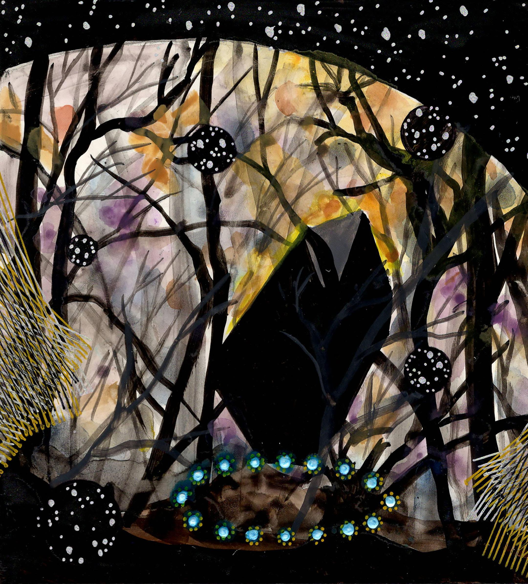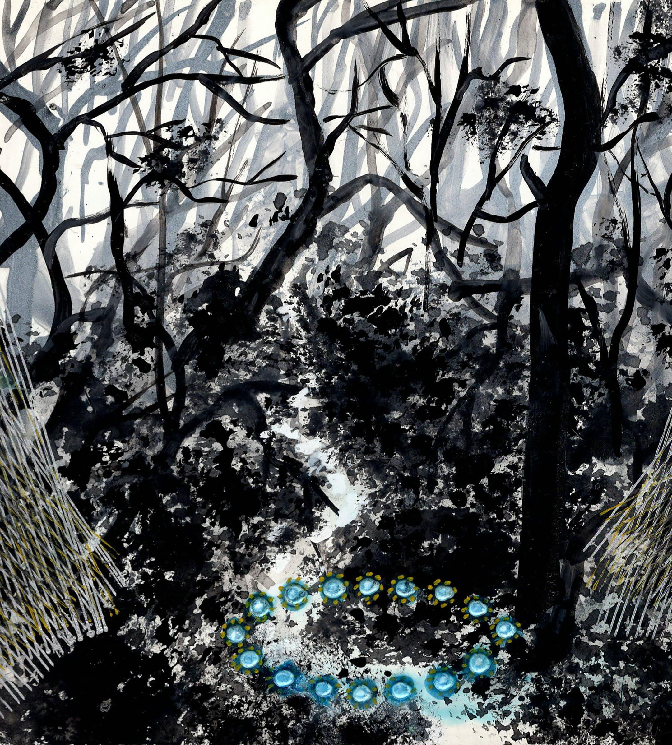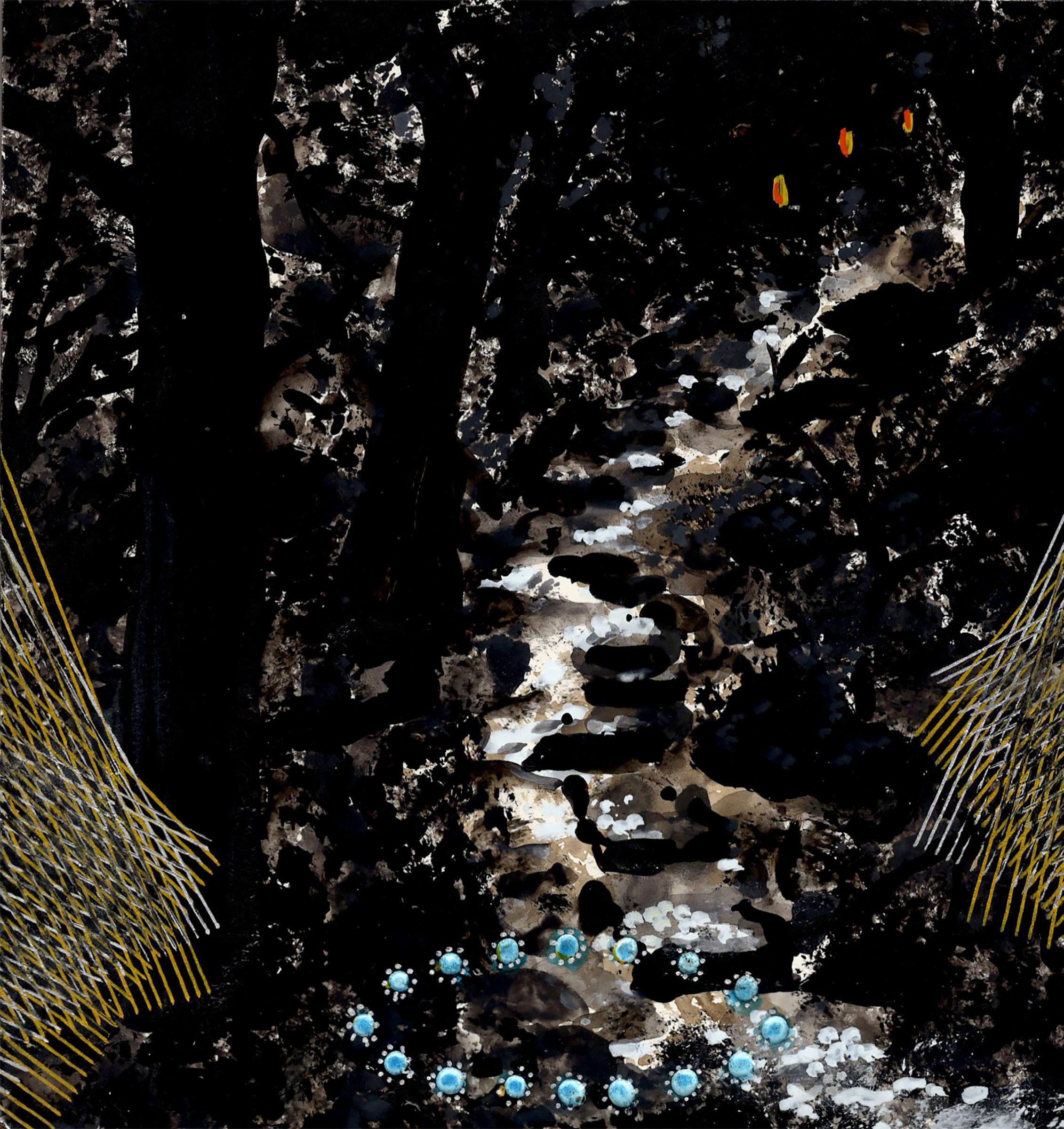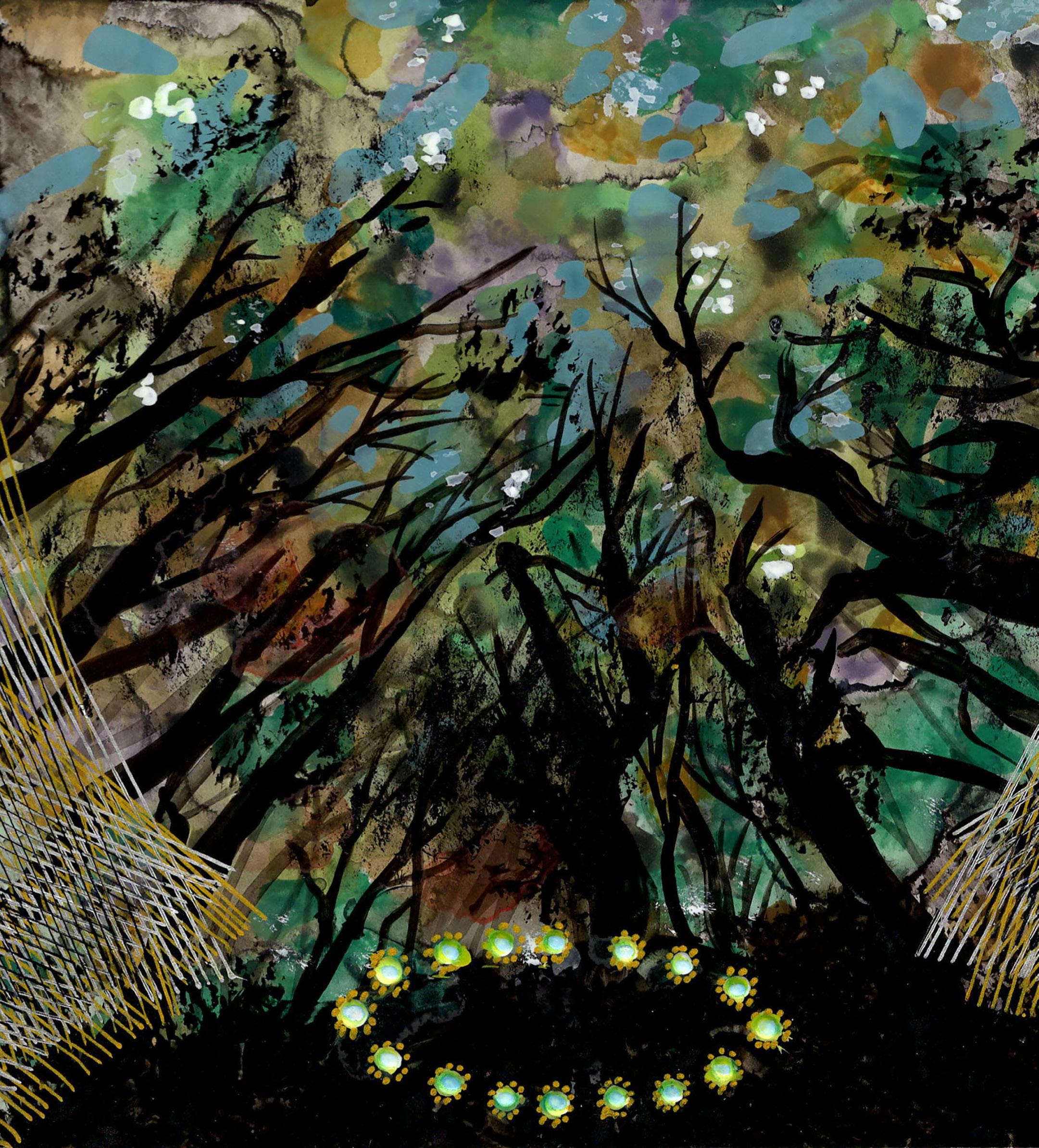 “Painted Forest” from Celestrial Maze 23-K-05 Gouache, ink, and colored pencil on board