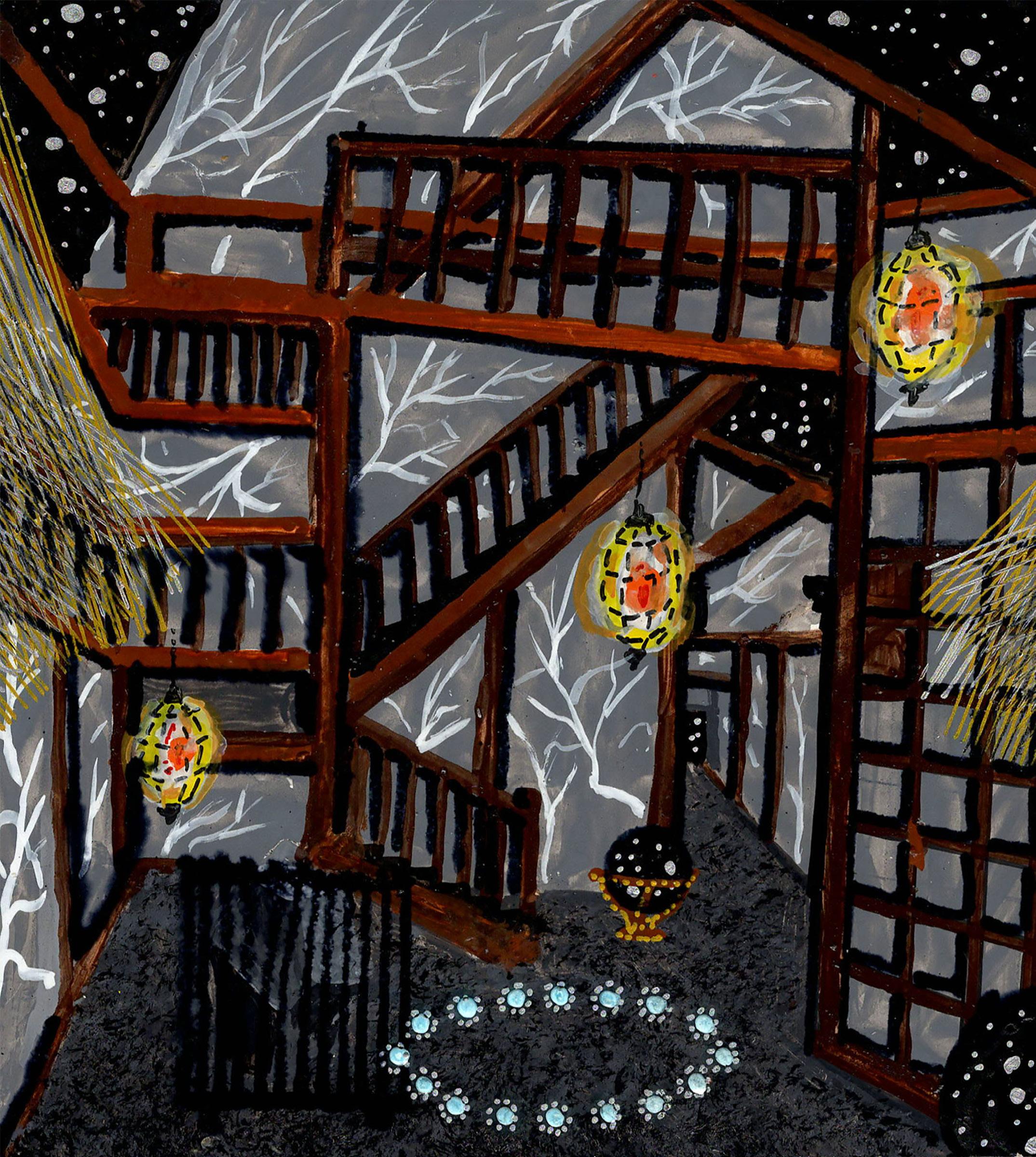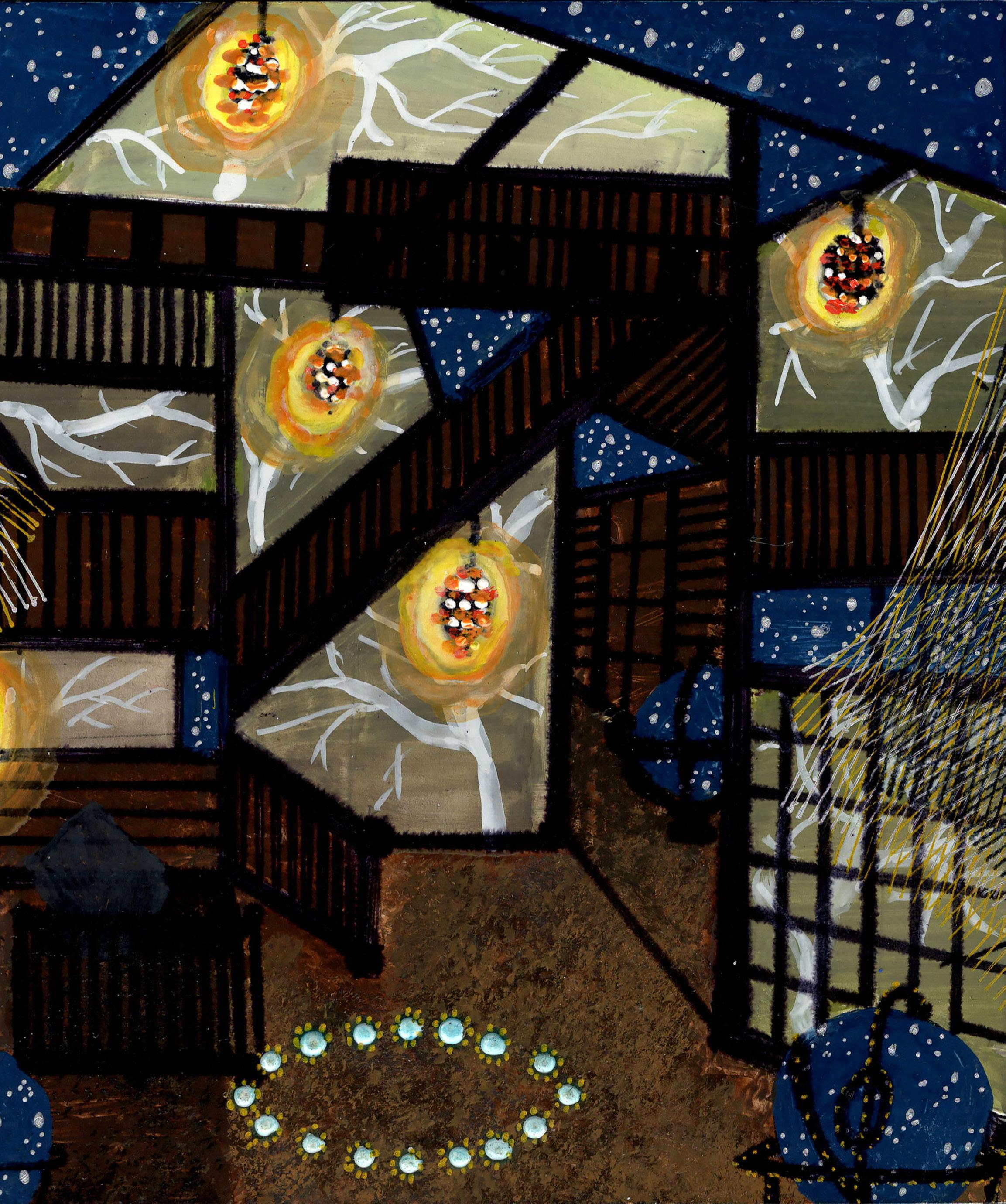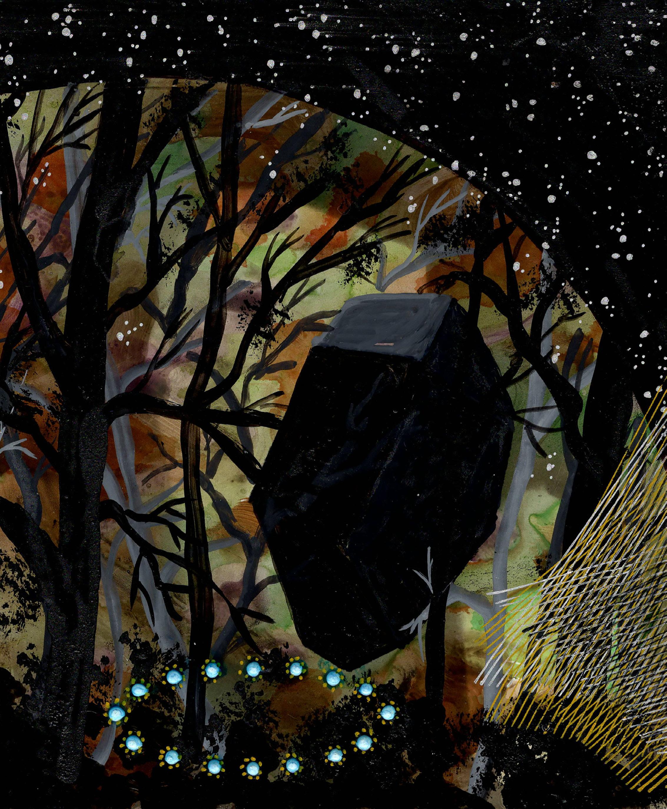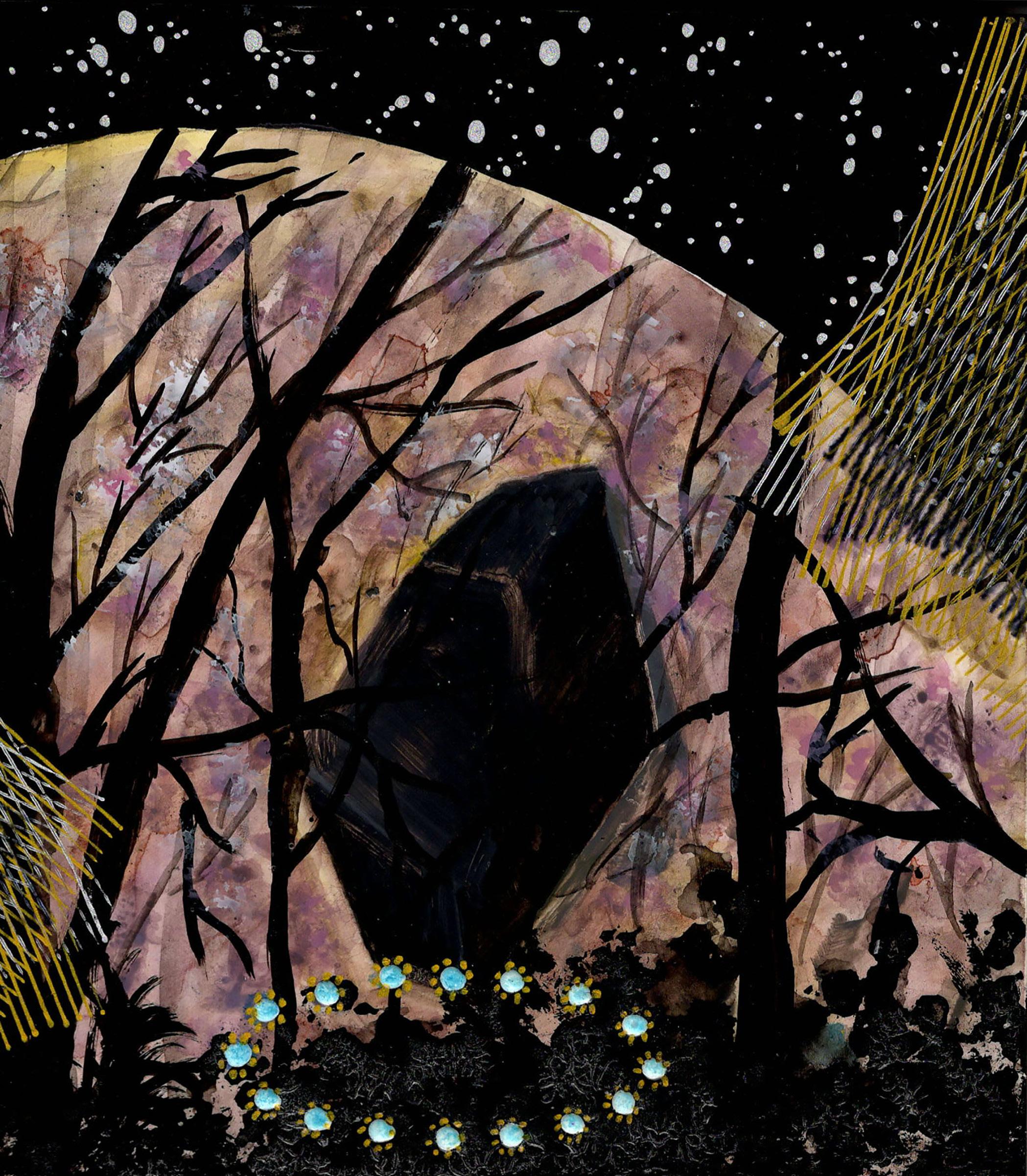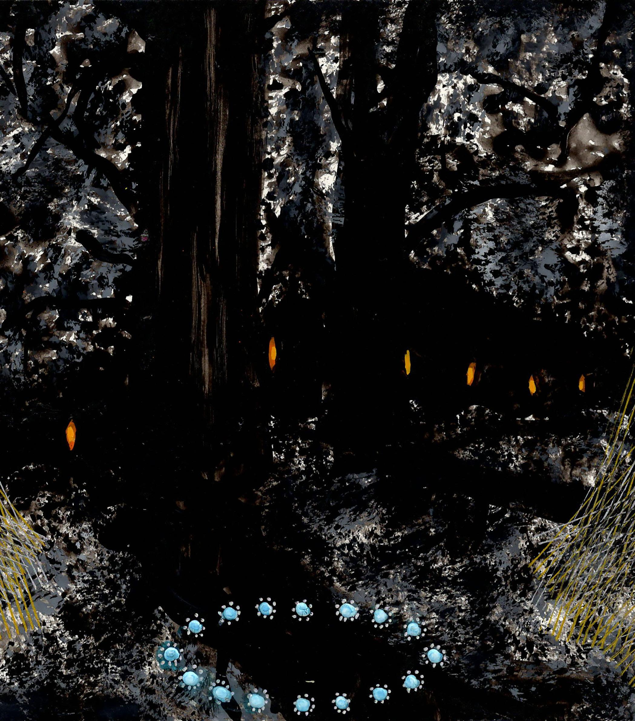 “Painted Forest” from Celestrial Maze 23-K-05 Gouache, ink, and colored pencil on board