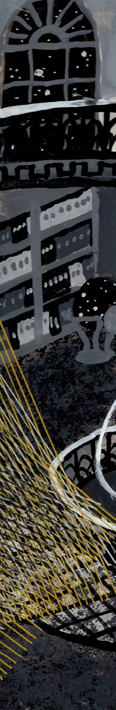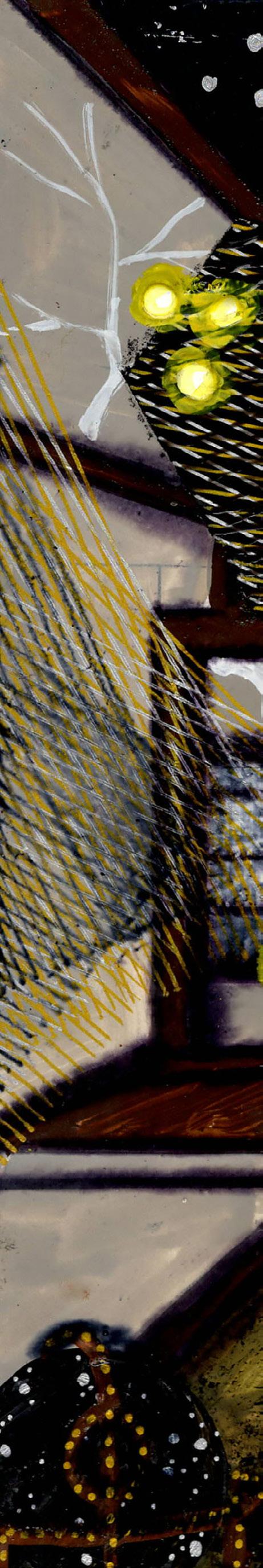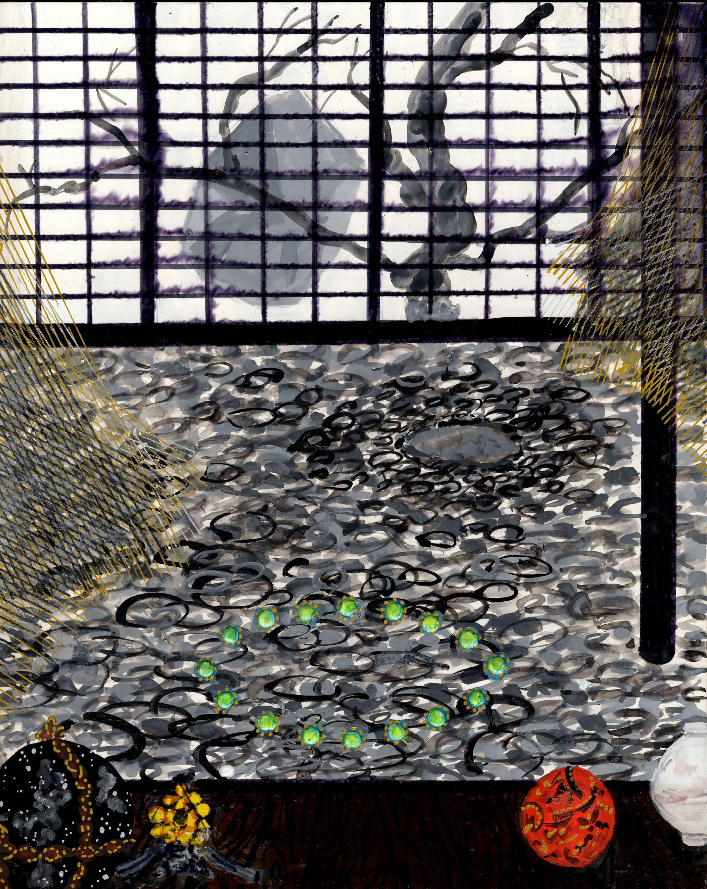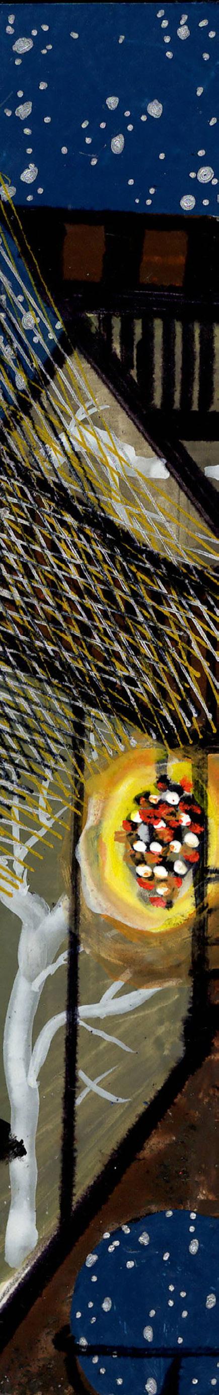 Gouache, ink, and colored pencil on board